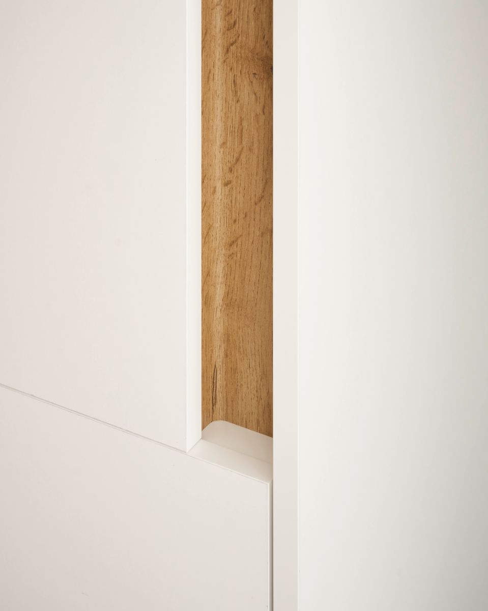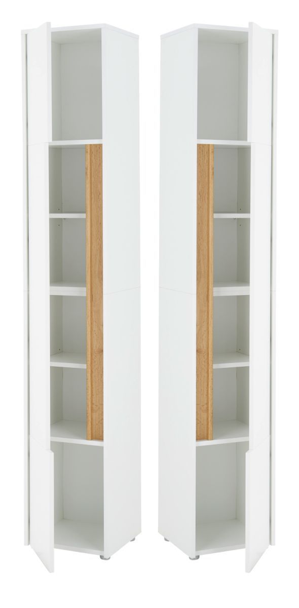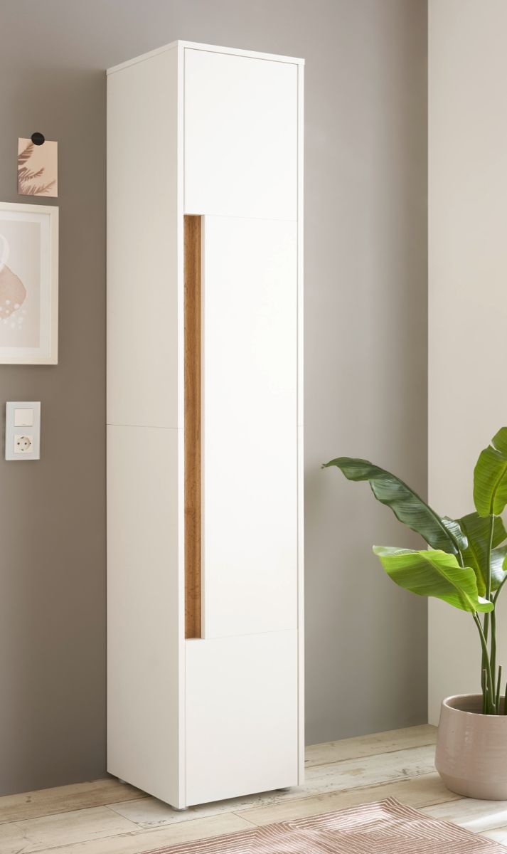 Badschrank Hochschrank weiß und Eiche Badezimmer Bad Möbel Schrank 34 x 200 cm Center