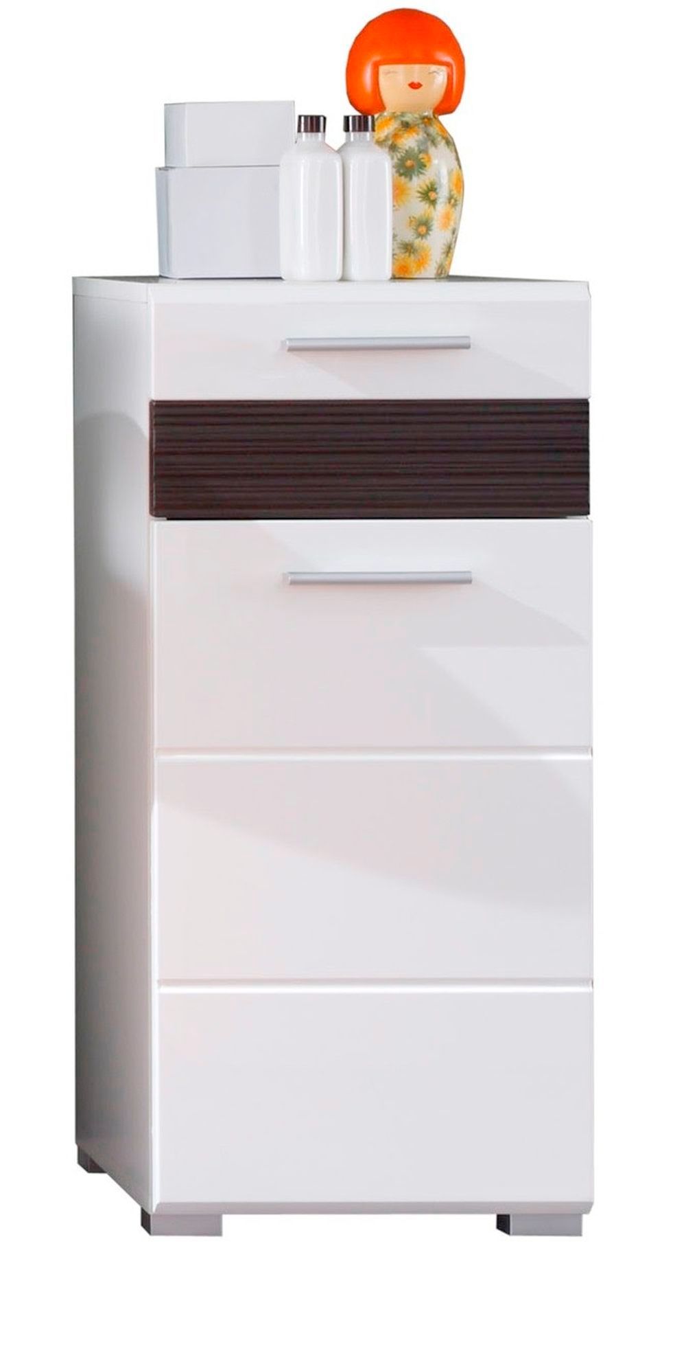 Trendteam Badschrank Kommode Mezzo Weiss Hochglanz und Eiche
