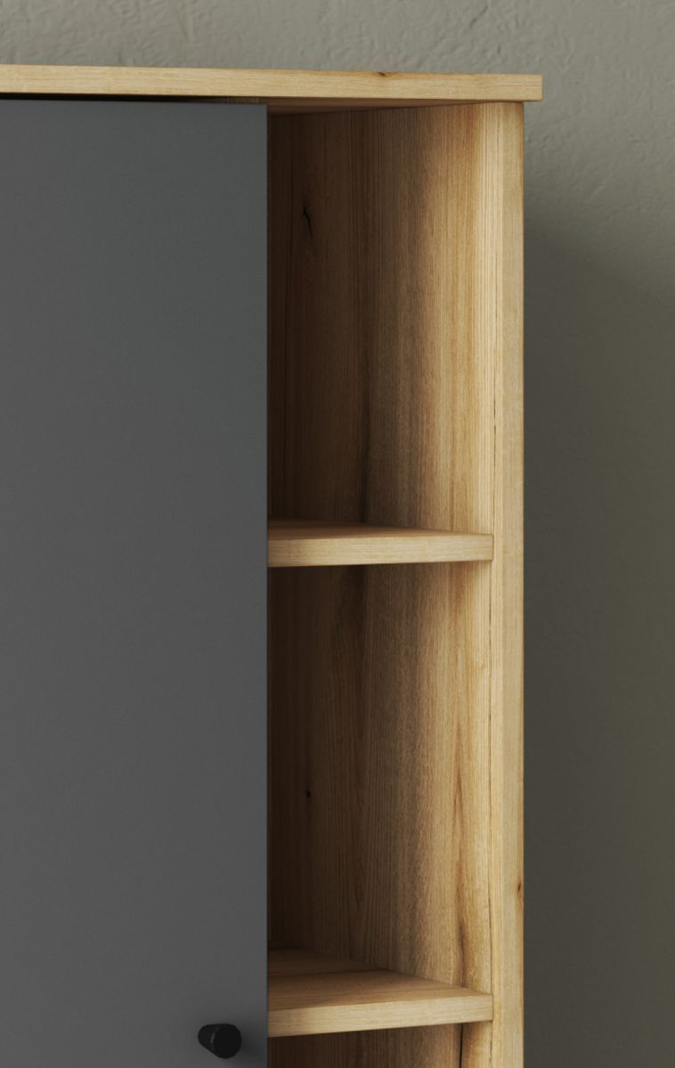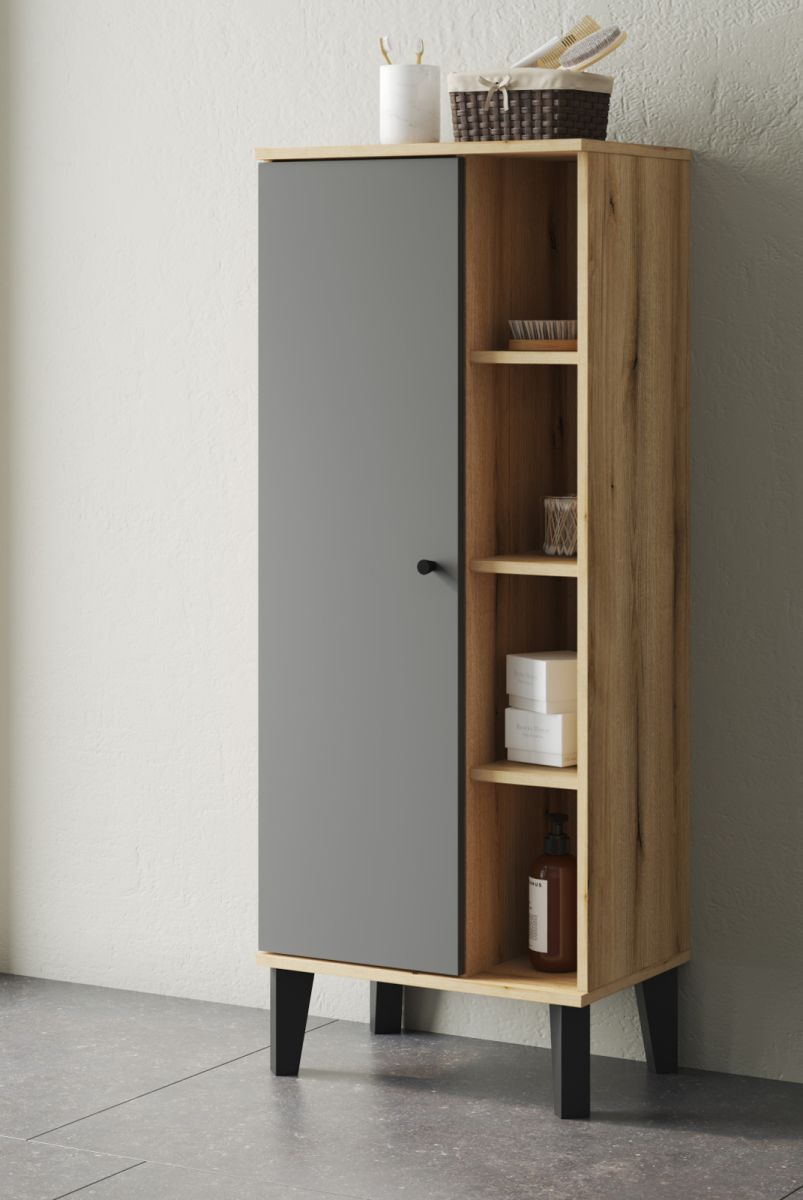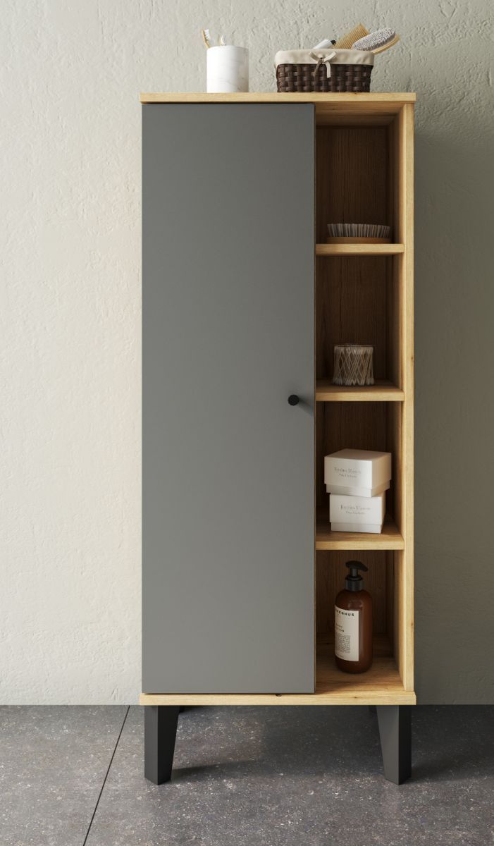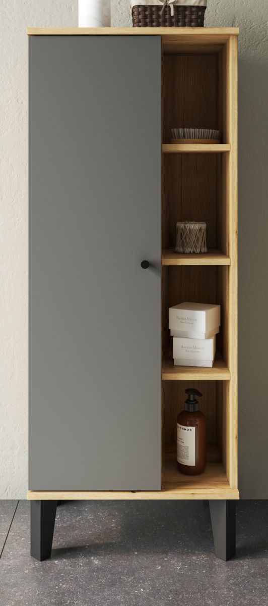 Badschrank Midischrank grau Eiche Evoke Badezimmer Möbel Kommode 51 x 128 cm Torsby
