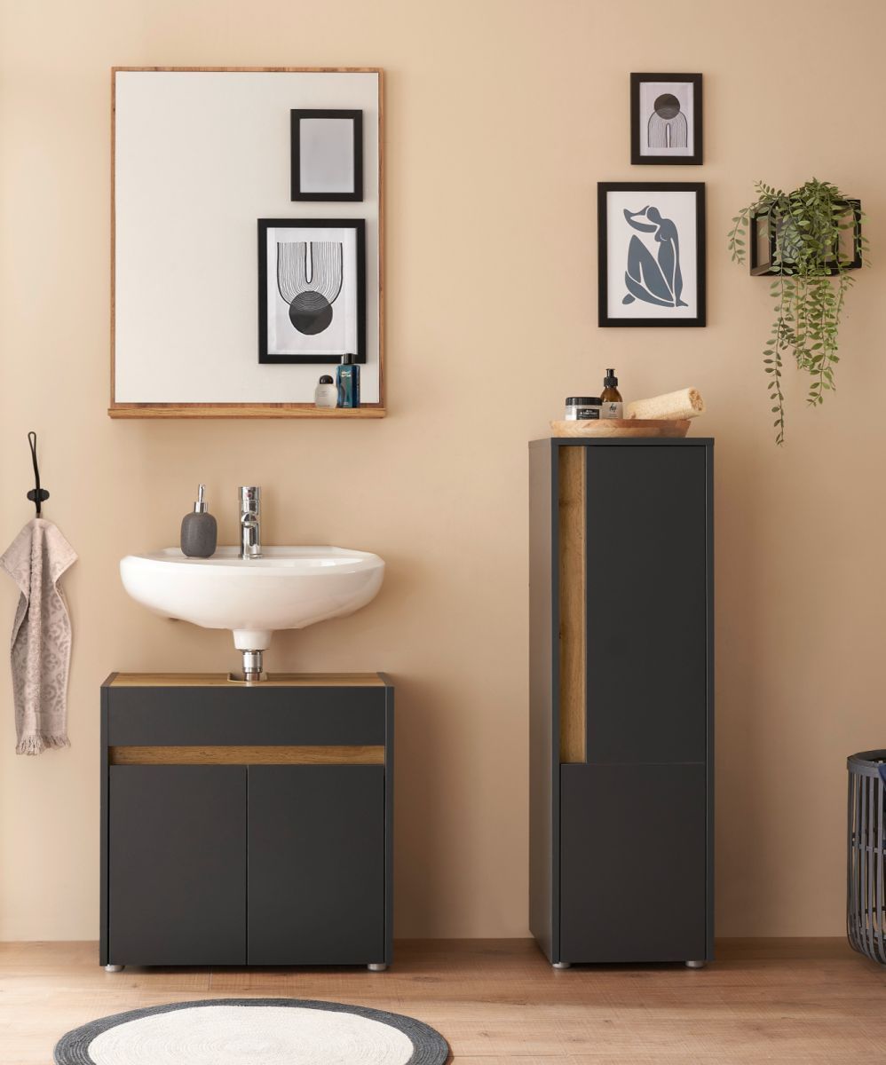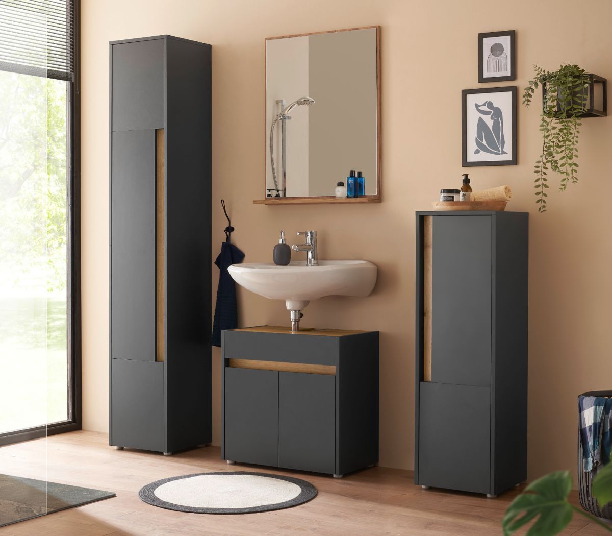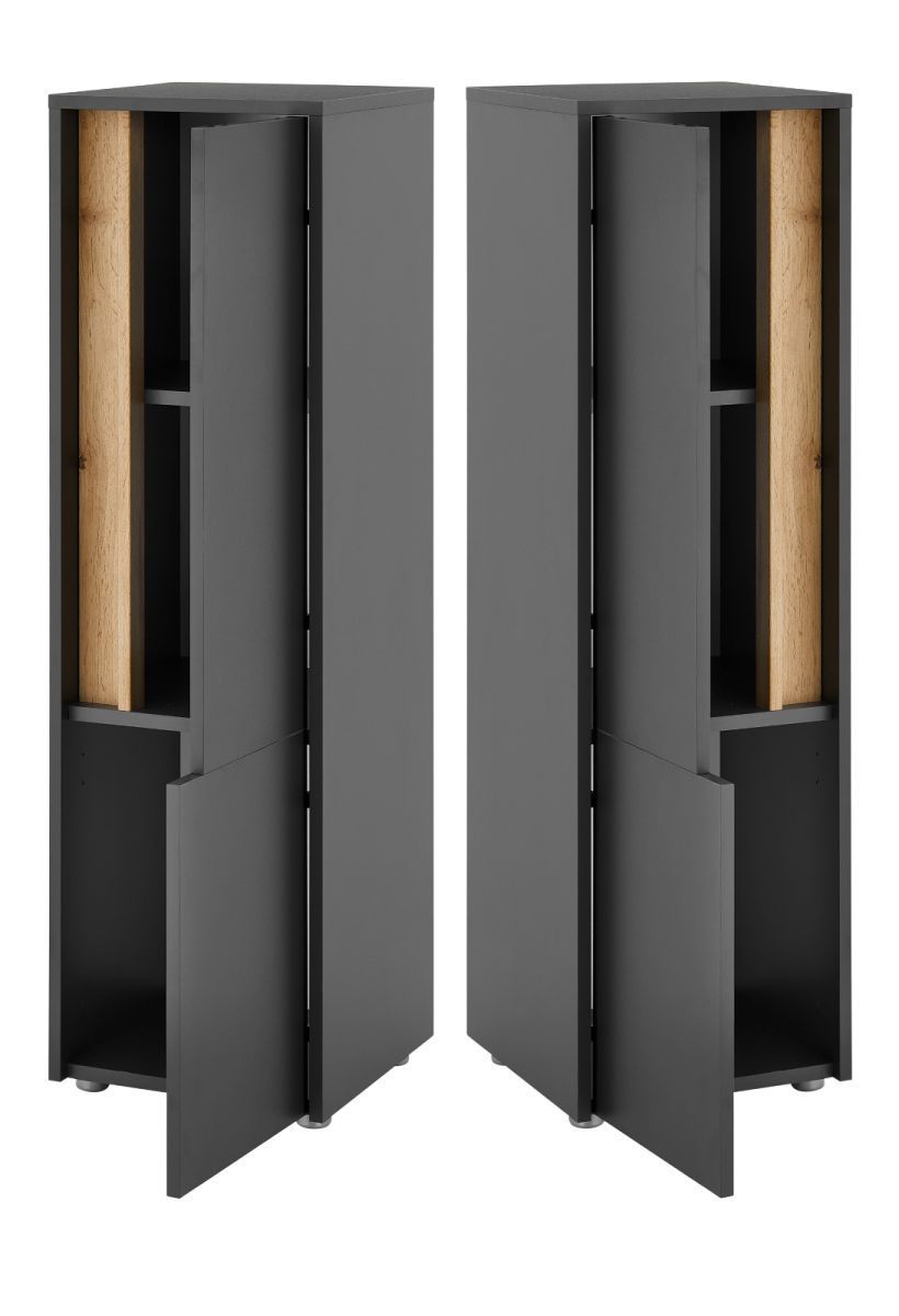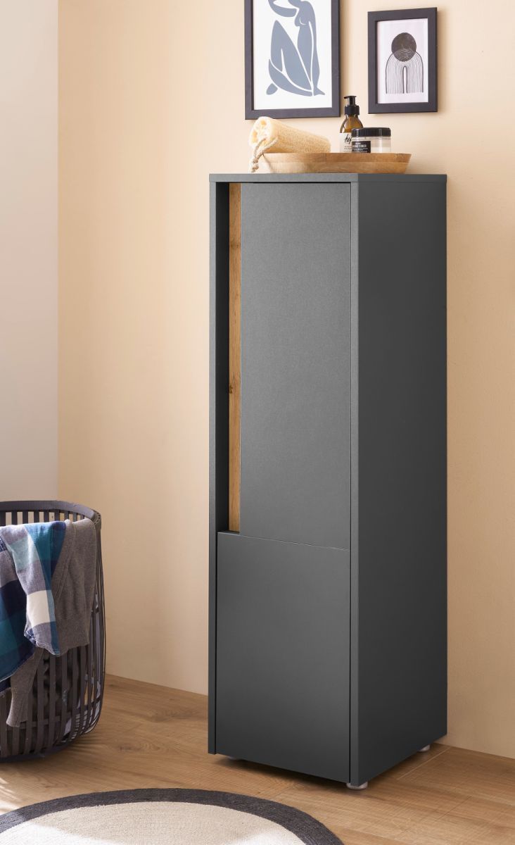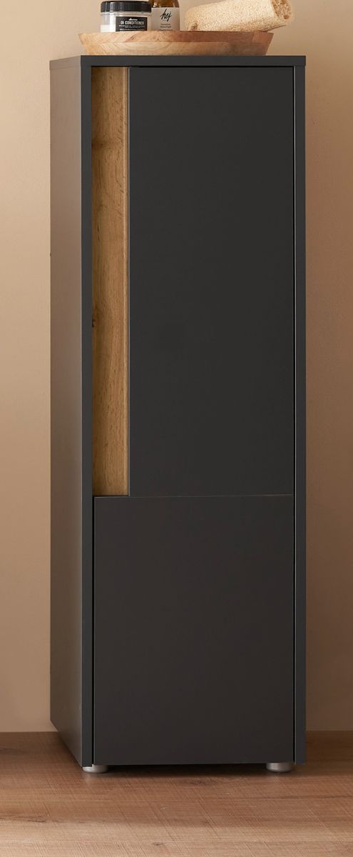 Badschrank Midischrank grau und Eiche Badezimmer Schrank 34 x 114 cm Kommode Center