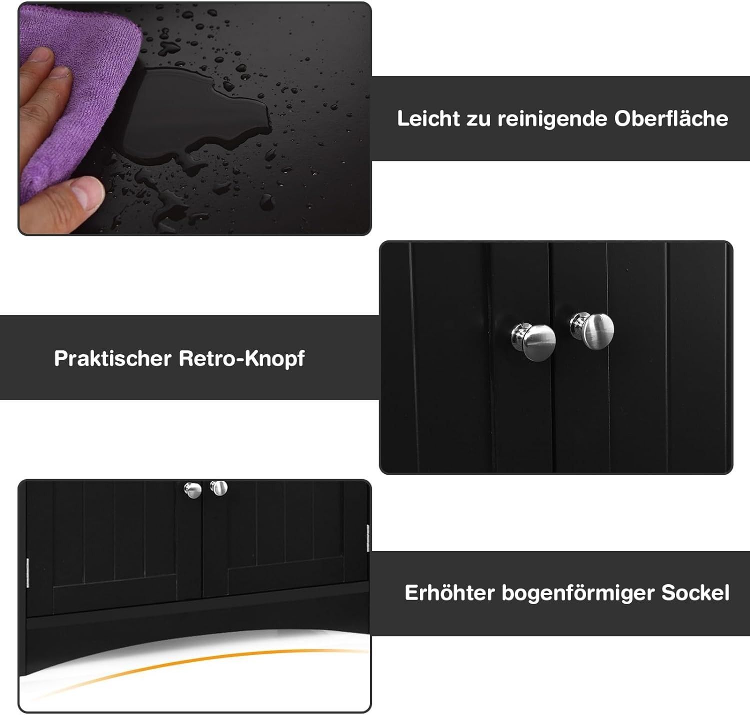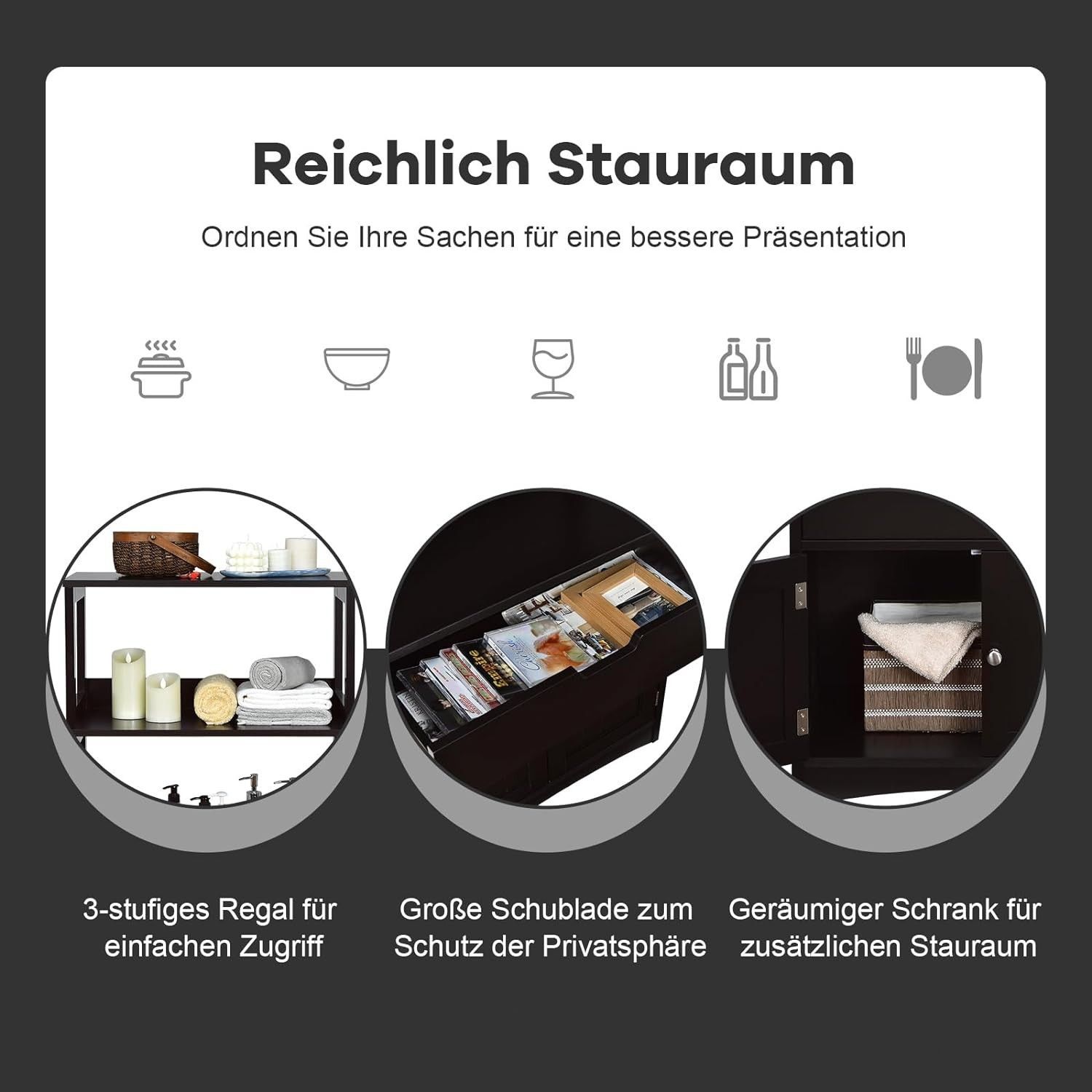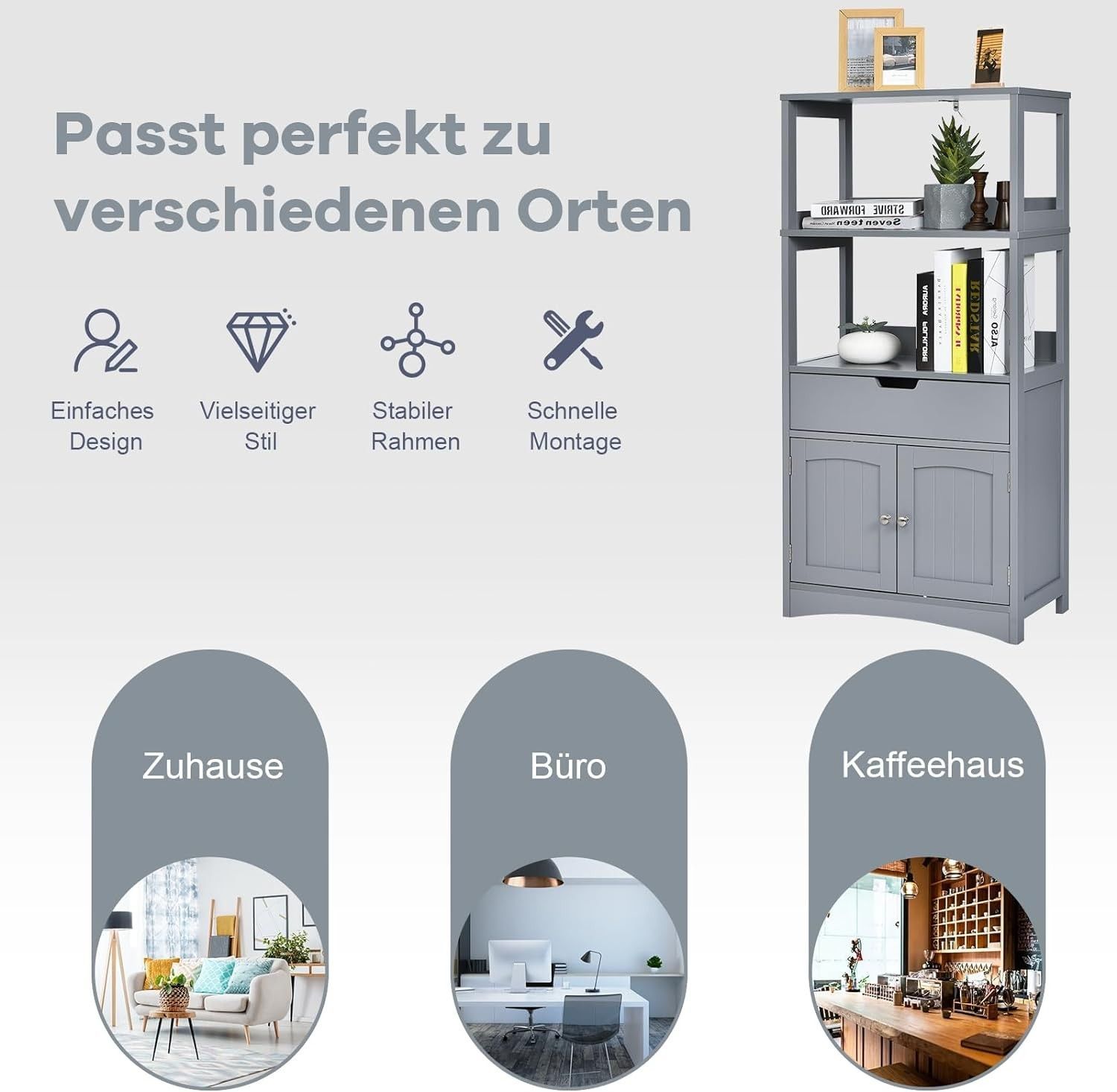 Badschrank mit Schublade, Hochschrank mit 2 offenen Regalen & Türschrank, Badkommode