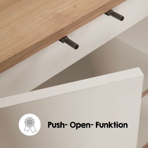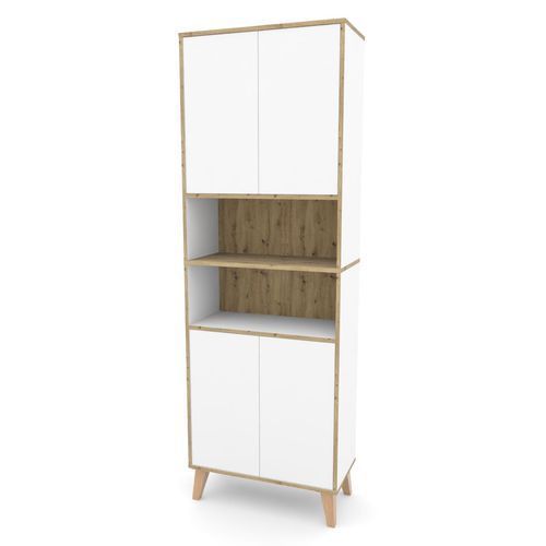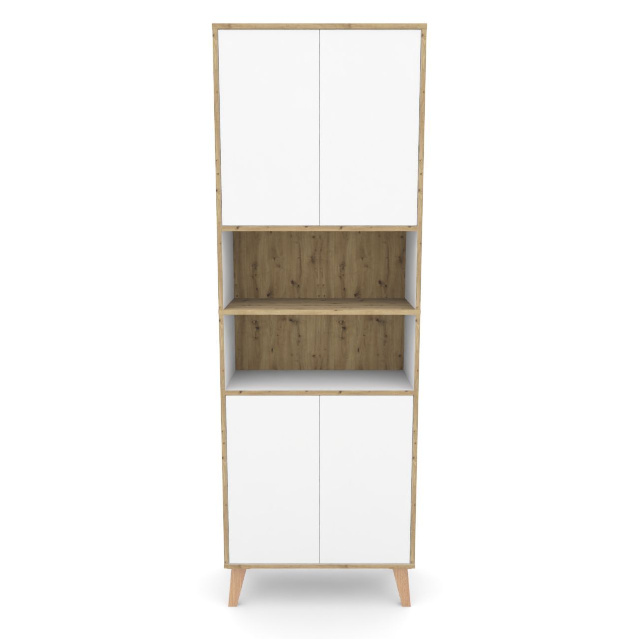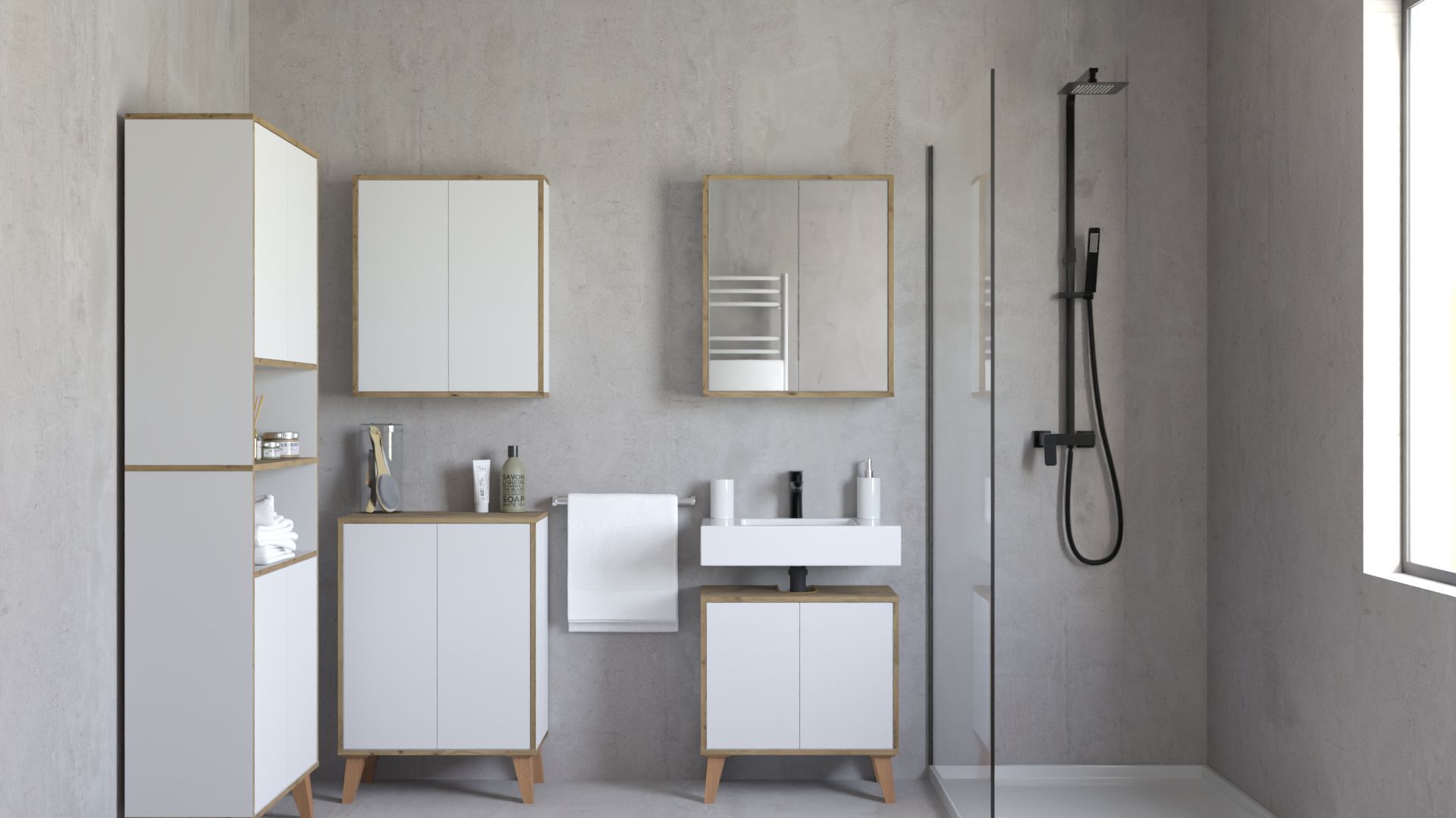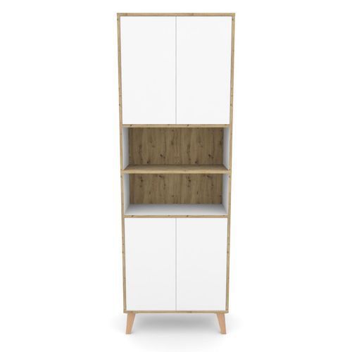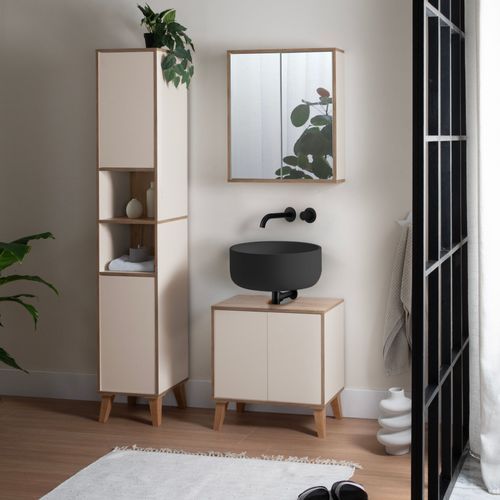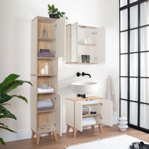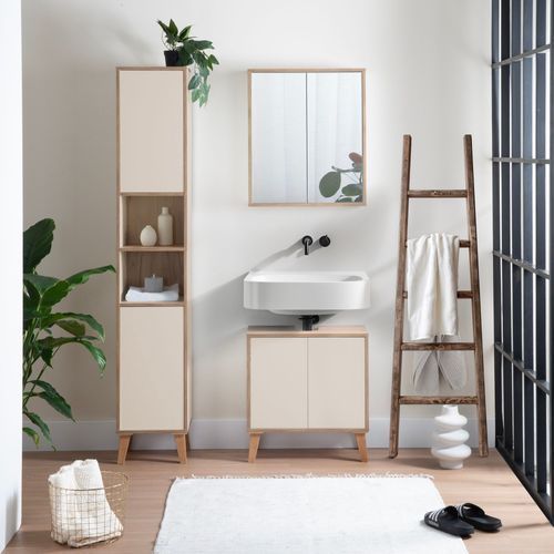 Badschrank MORENA mit 4 Türen und 2 offenen Fächern, Cashmere/Eiche