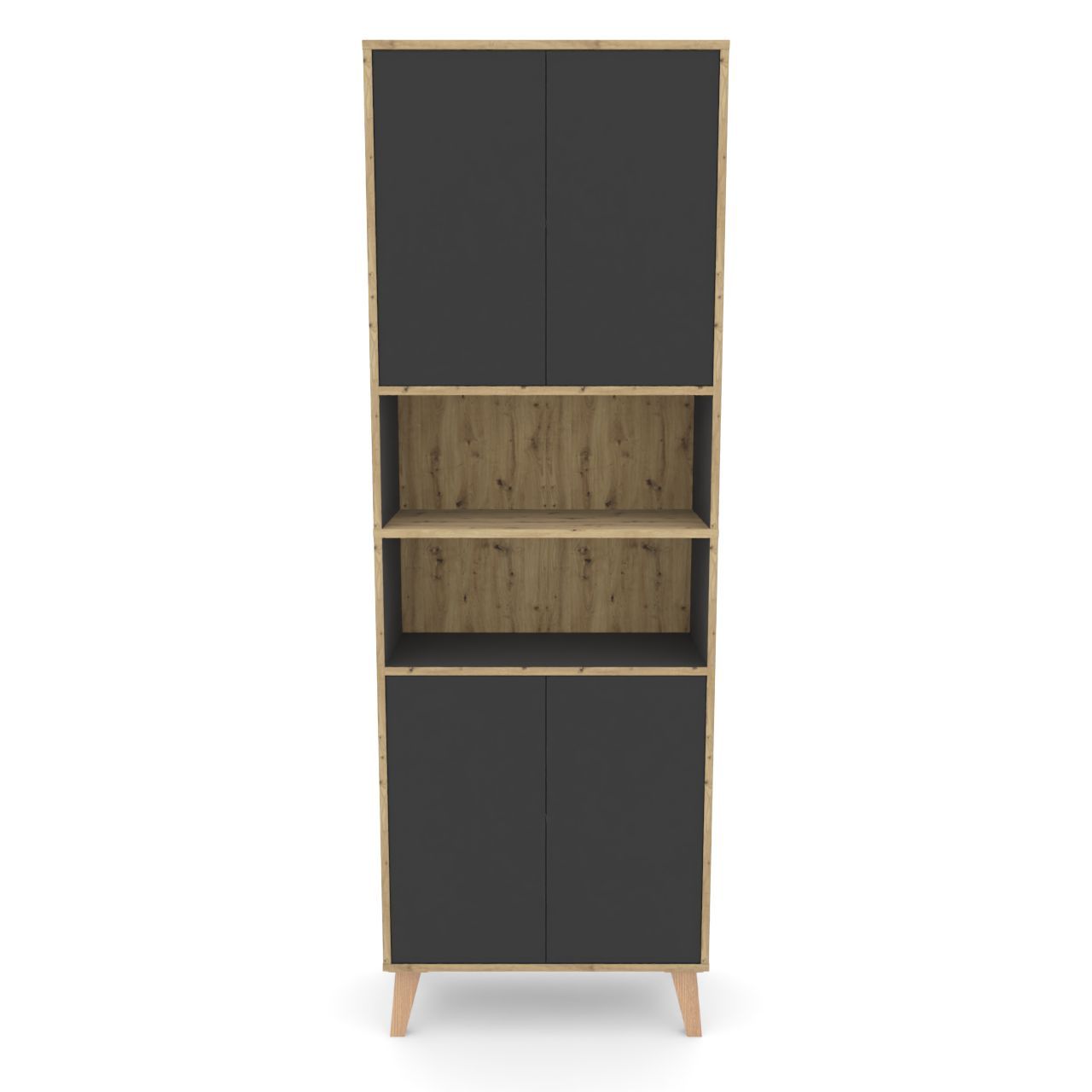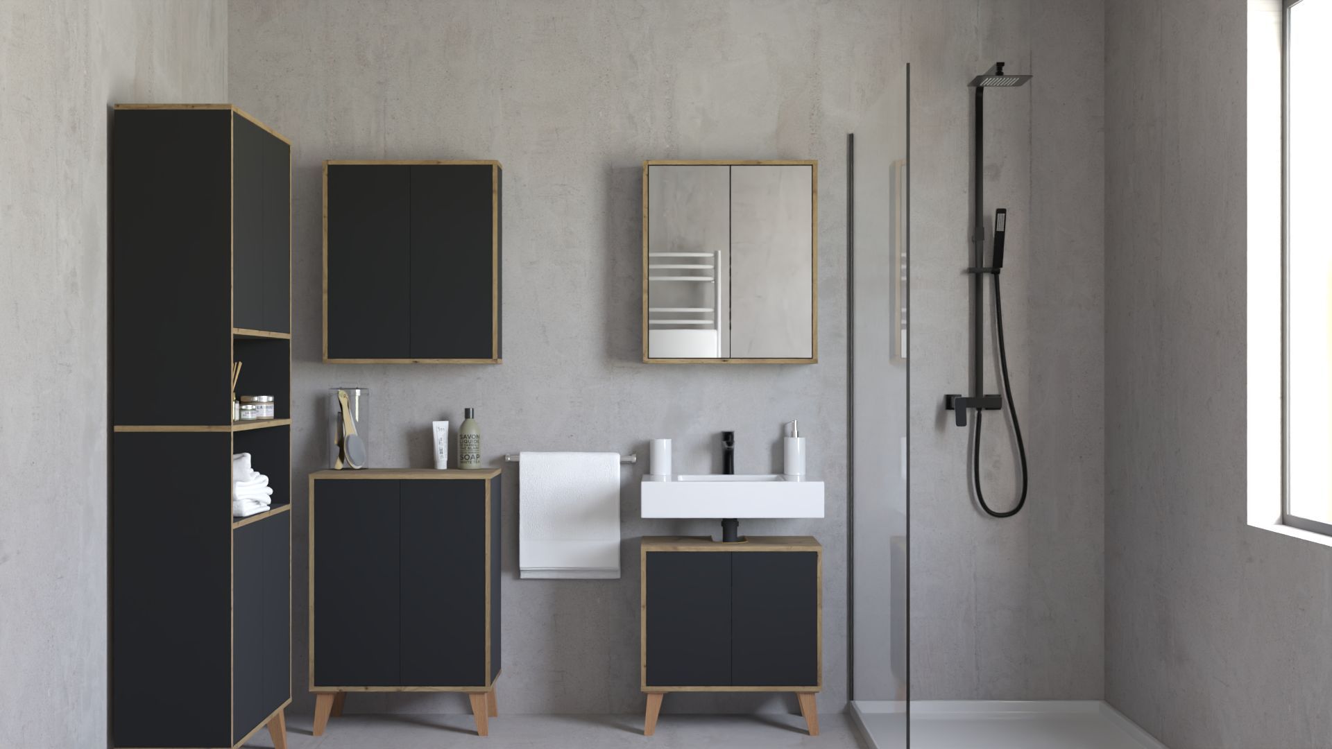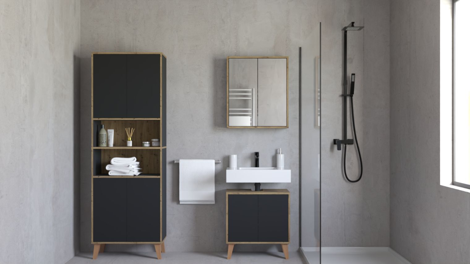 Badschrank MORENA mit 4 Türen und 2 offenen Fächern, Grau/Eiche