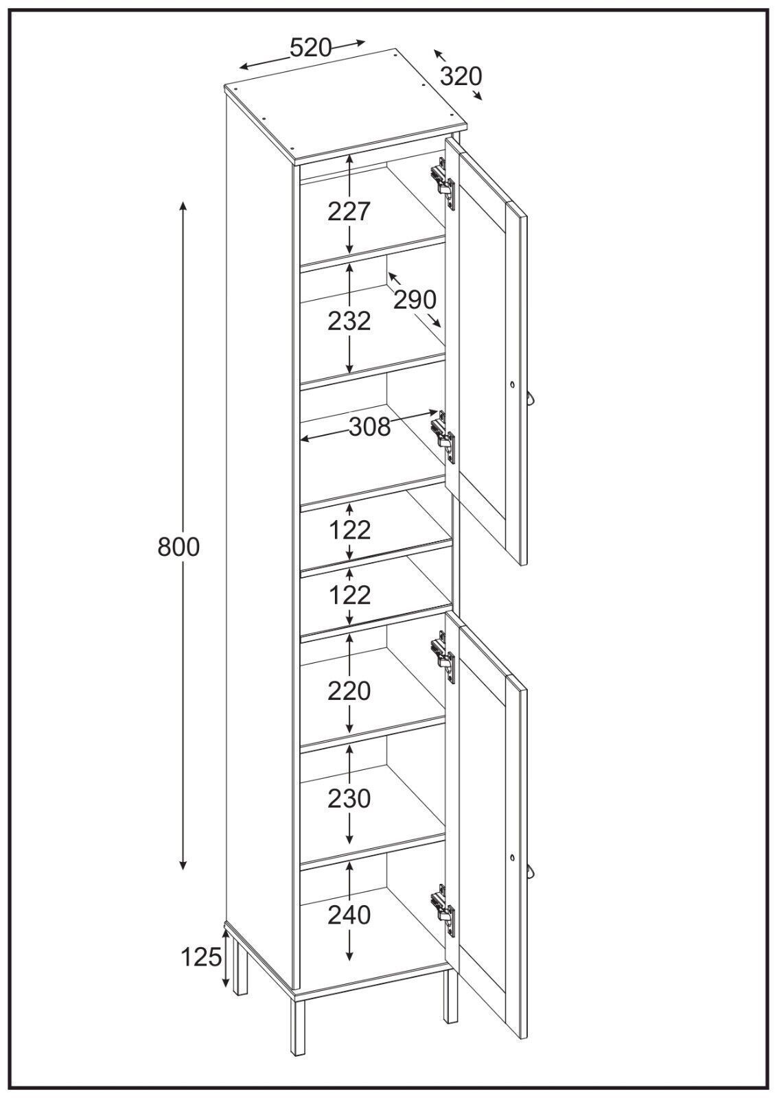 Badschrank Regal Kiefer massiv lackiert 35x190x32 cm Valencia