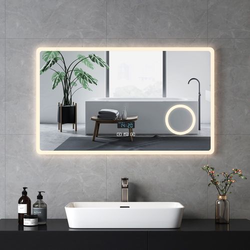Badspiegel mit LED Beleuchtung Touch+Beschlagfrei+Bluetooth+Uhr LED Wandspiegel