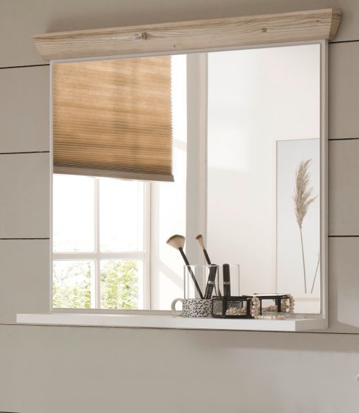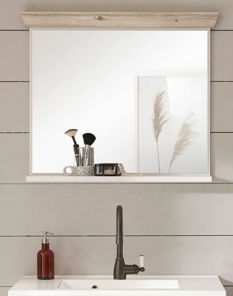 Badspiegel Rovola in Pinie weiß Badezimmer Spiegel mit Ablage 80 x 72 cm Badmöbel