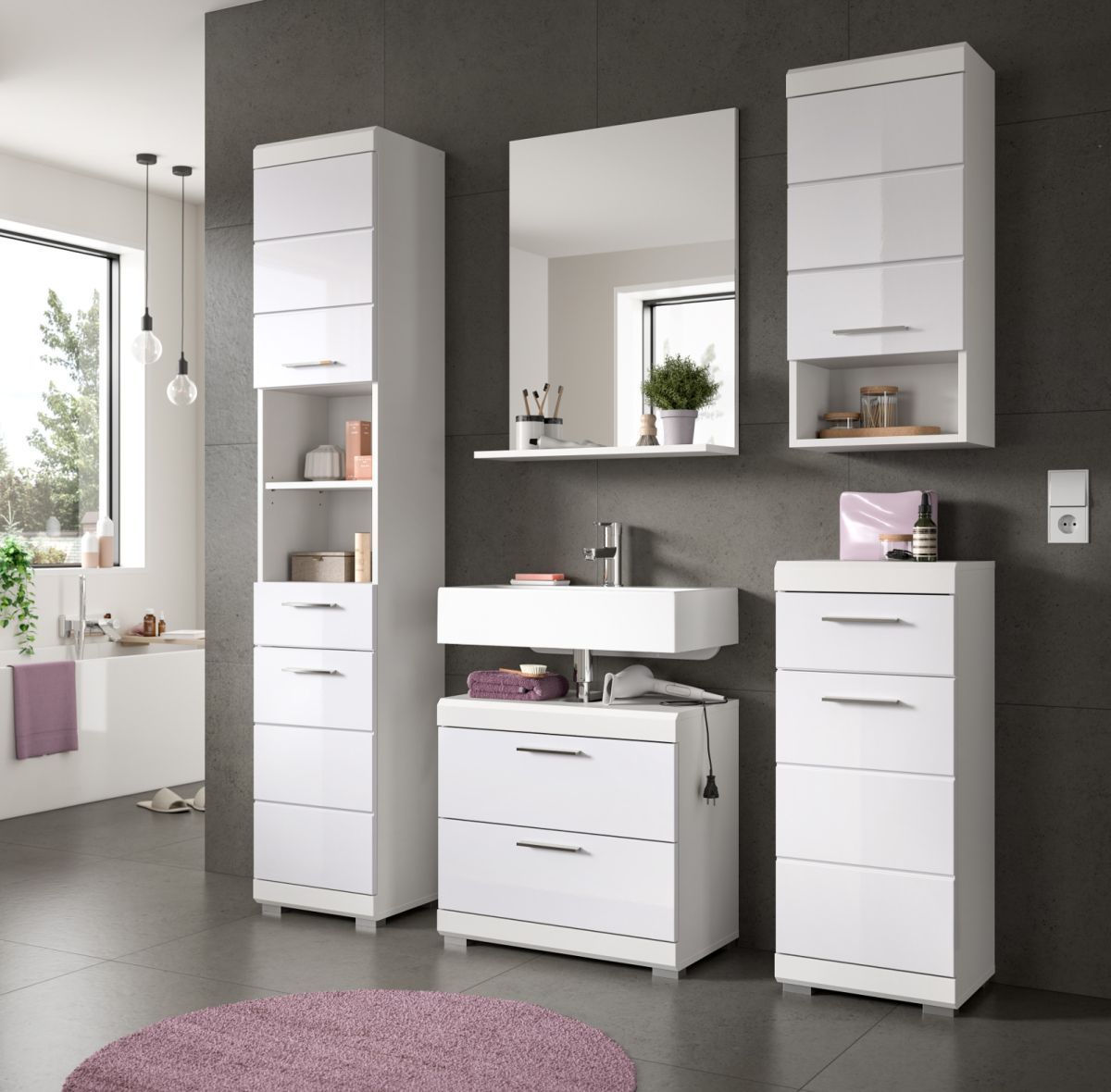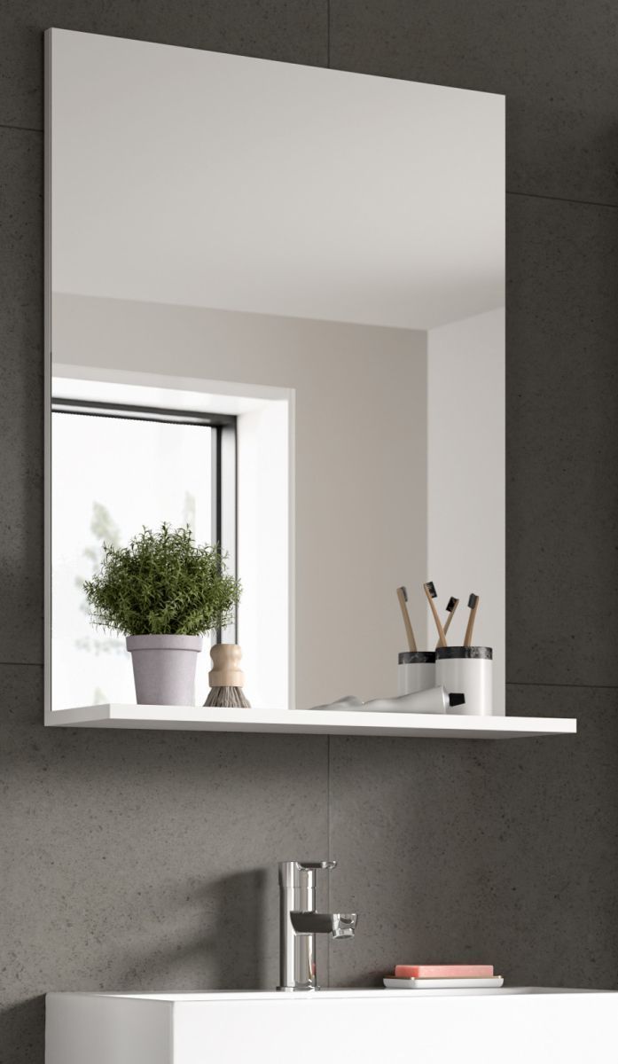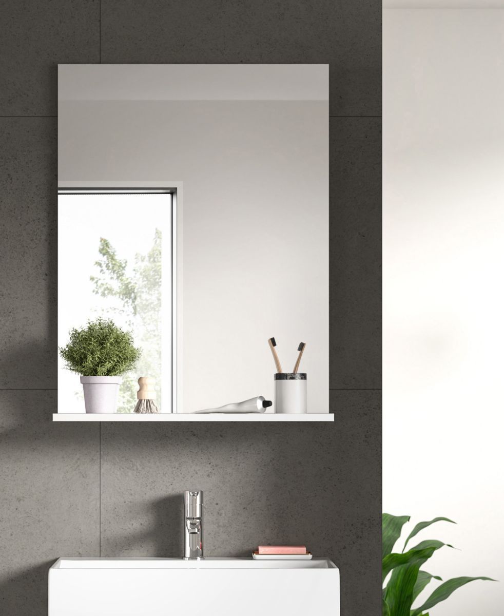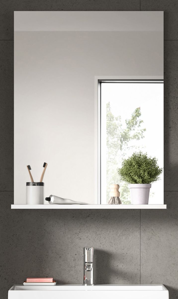 Badspiegel Wandspiegel in weiß Badezimmer Spiegel mit Ablage 60 x 79 cm Shawn