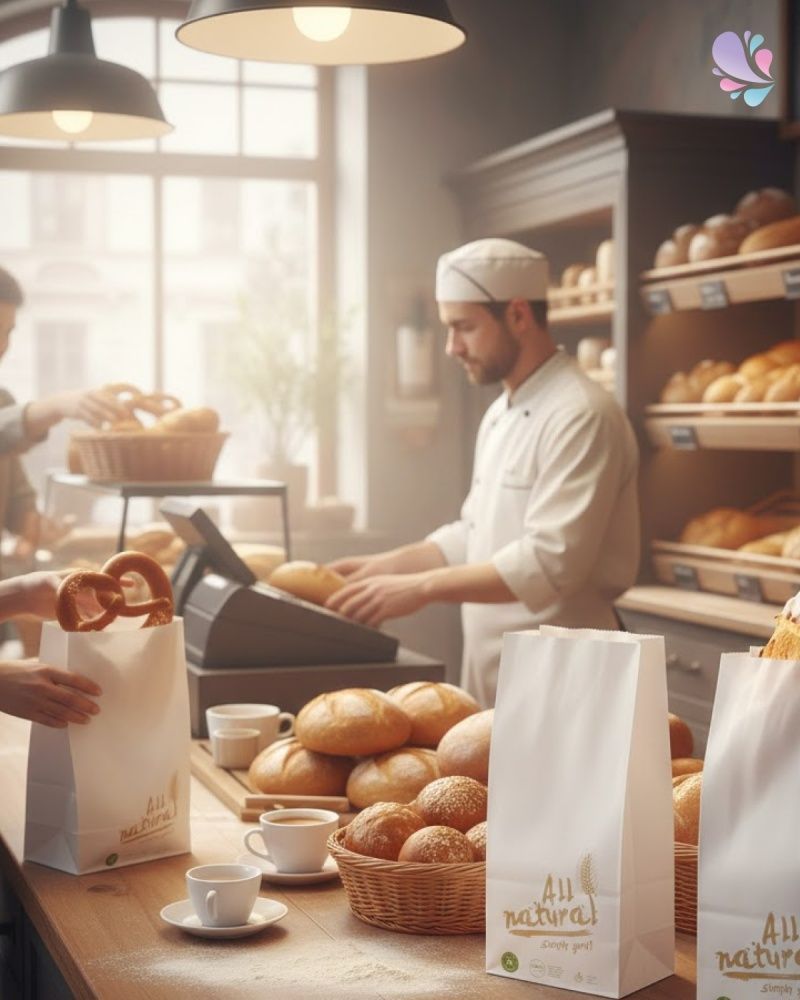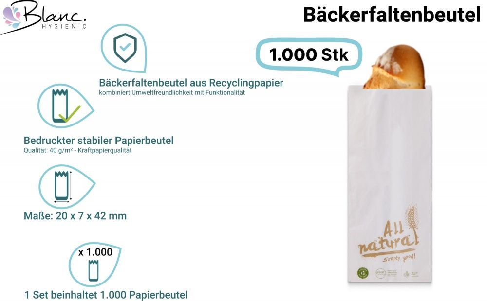 Bäckerfaltenbeutel, Papierbeutel, weiß, Aufdruck "All natural" 20x 7x 42cm, 1000 Stüc