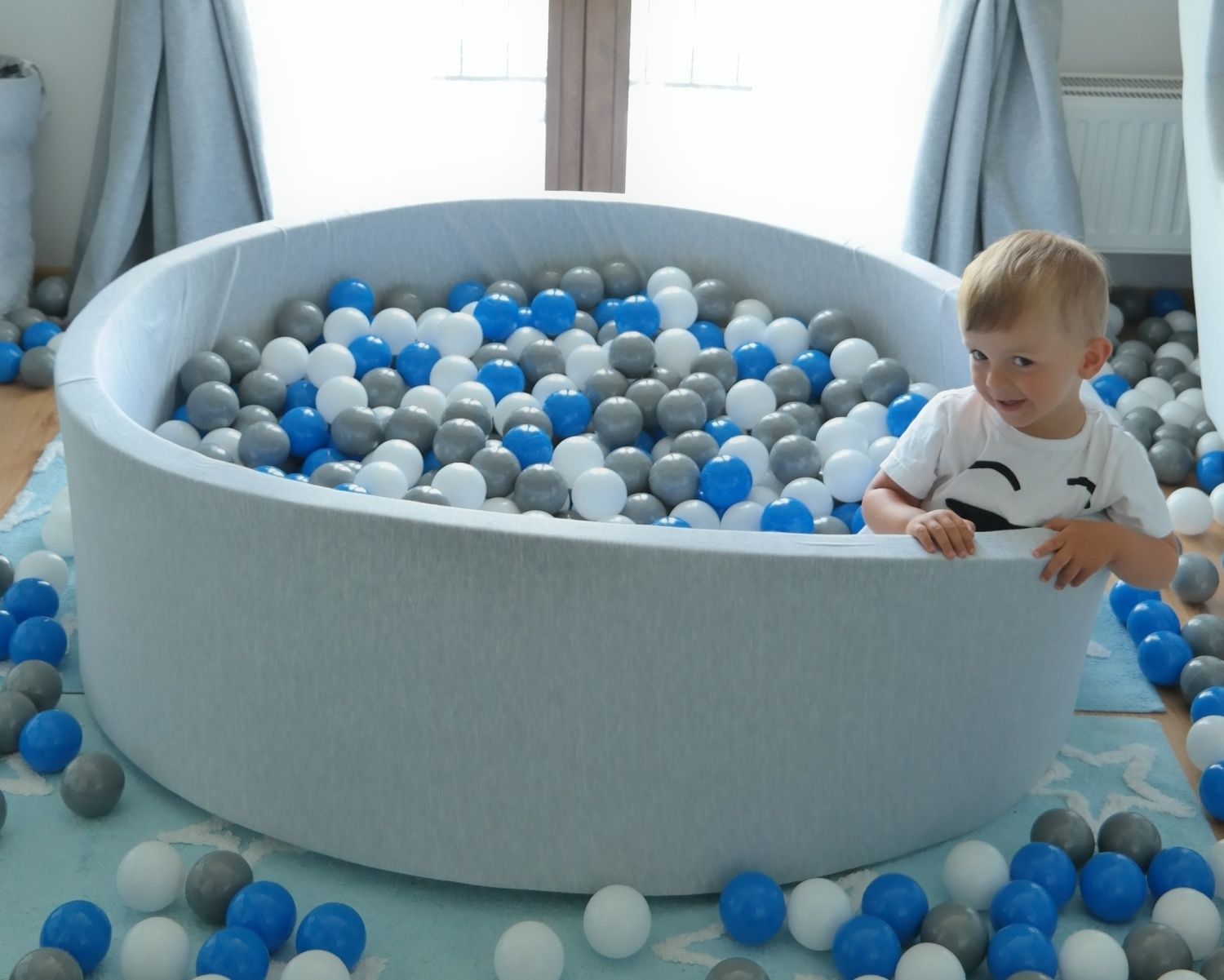 Bällebad 125 cm mit 600 Bällen weiß, grau & türkis