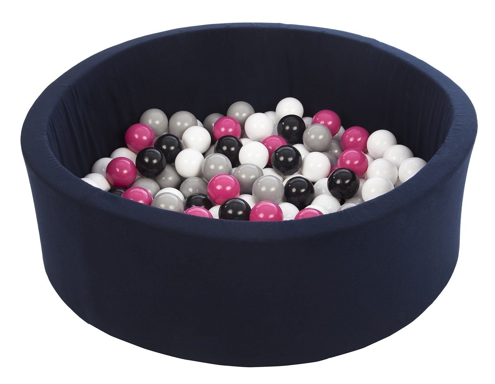 Bällebad – 150 Bälle – Marineblau – rundes Bällebad – 90 x 30 cm – schwarze, weiß