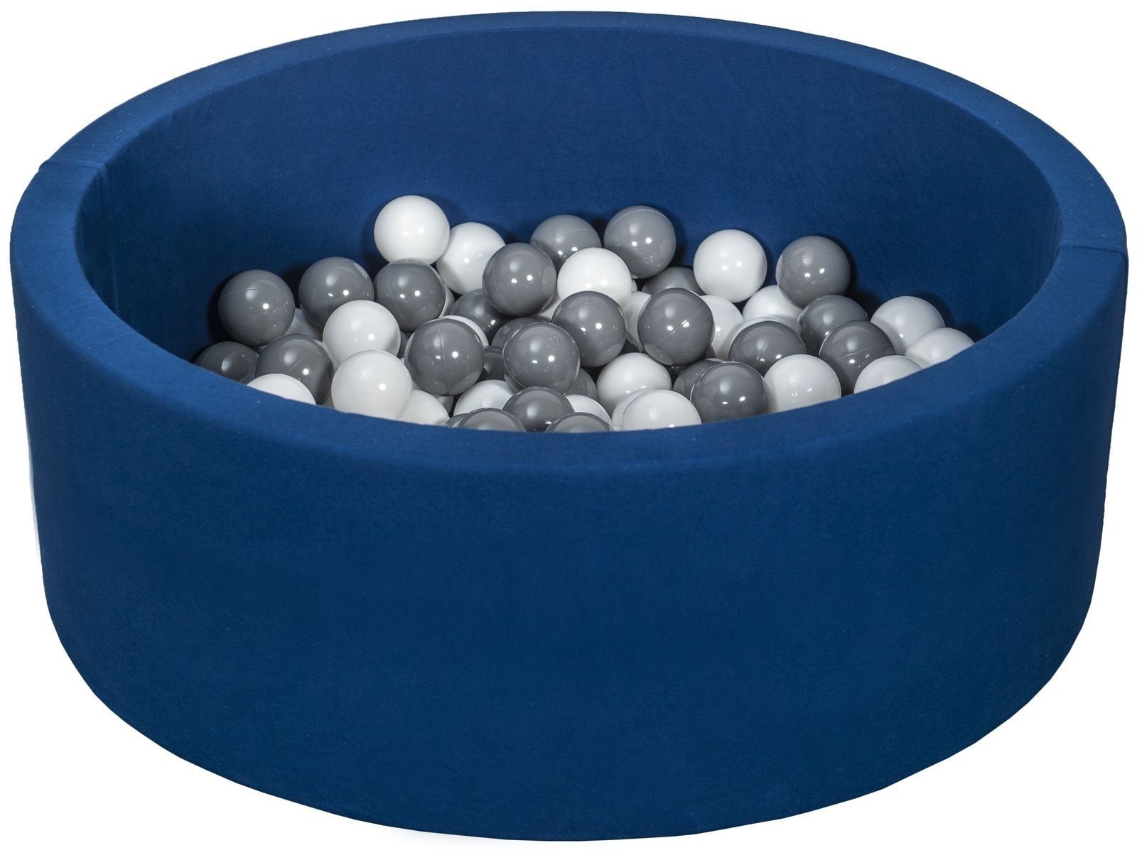 Bällebad – 150 Bälle – Marineblau – rundes Bällebad – 90 x 30 cm – weißgraue Bälle