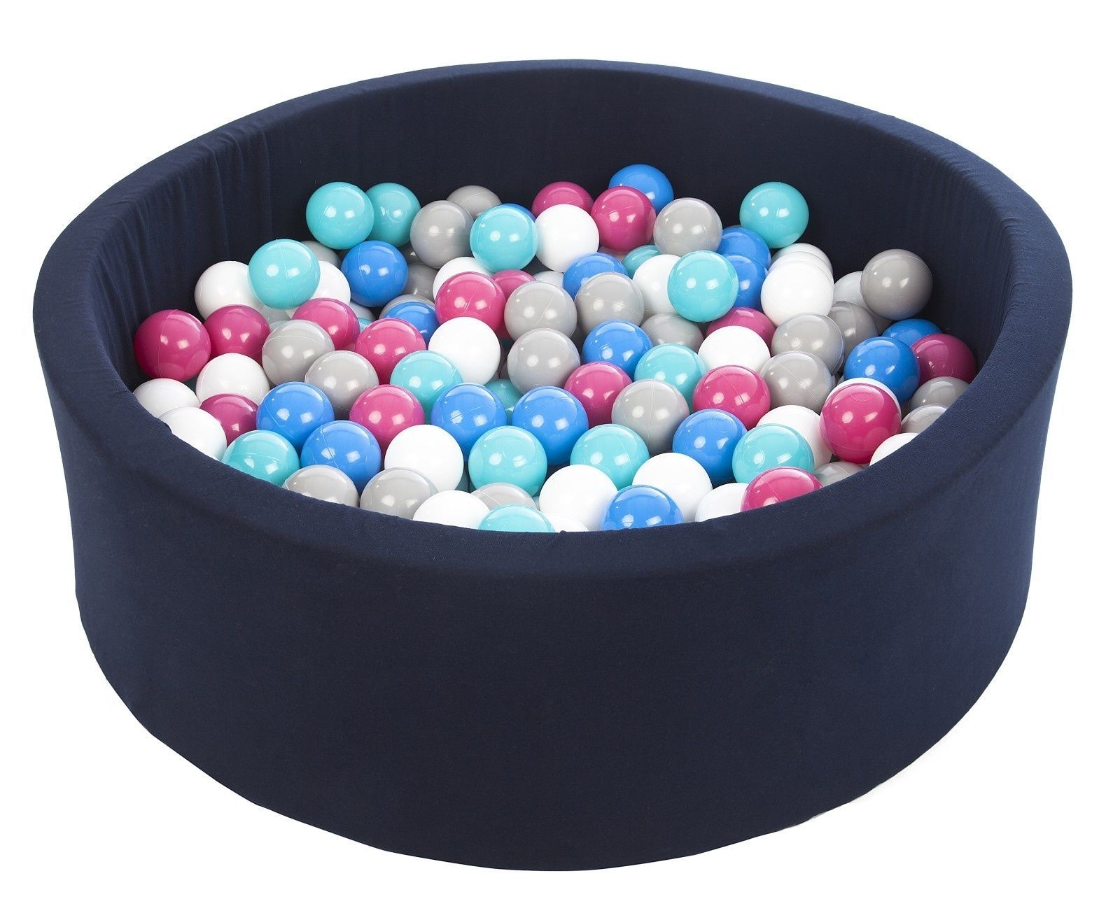 Bällebad – 200 Bälle – Marineblau – rundes Bällebad – 90 x 30 cm – weiße, blaue,
