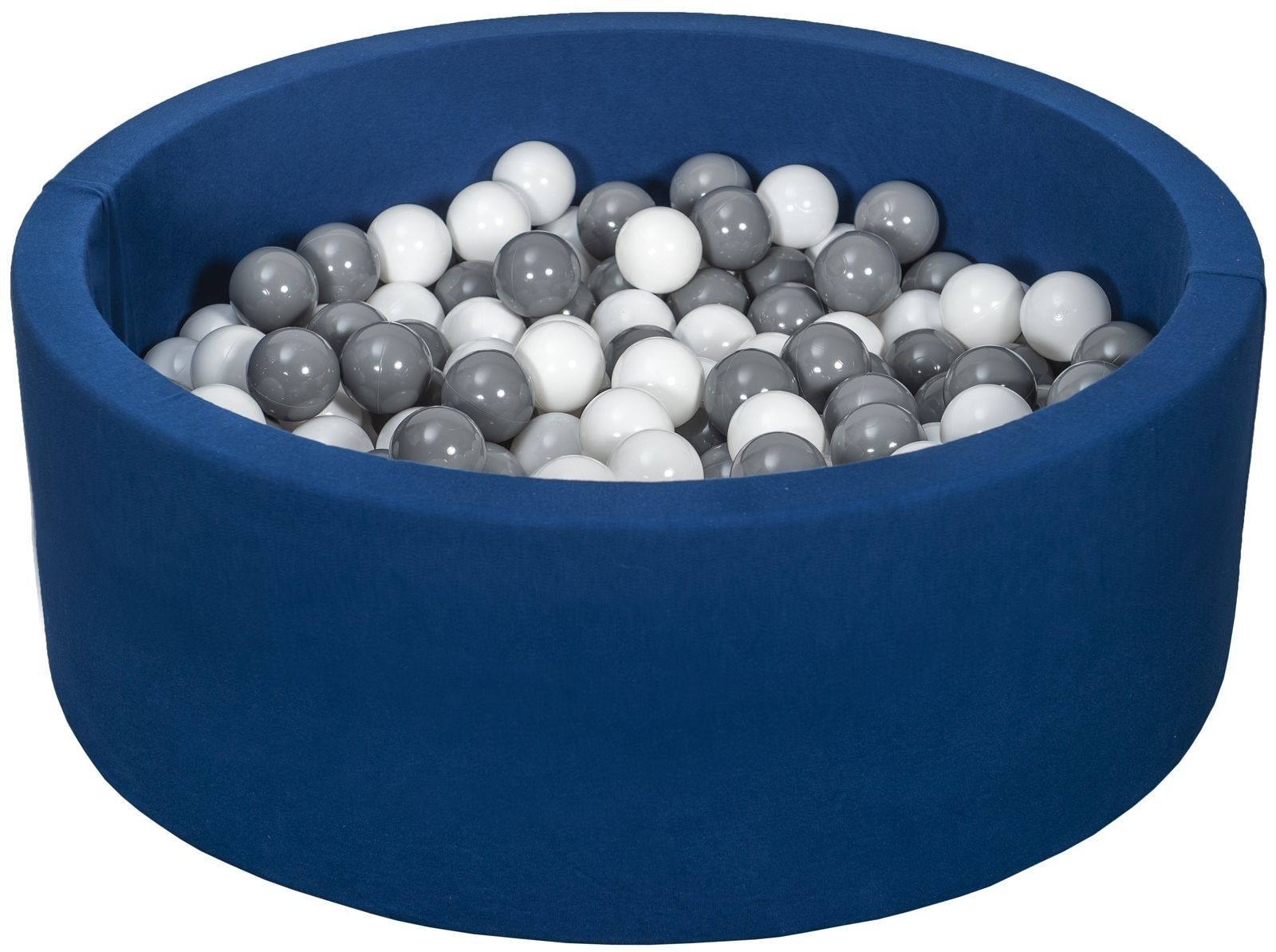 Bällebad – 200 Bälle – Marineblau – rundes Bällebad – 90 x 30 cm – weißgraue Bälle