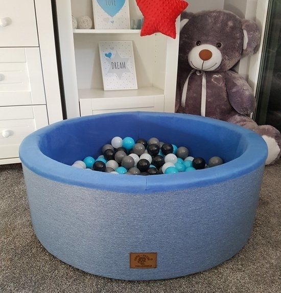 Bällebad - Festes Bällebad - 90 x 30 cm - 200 Bälle - Weiß, Grau, Schwarz, Hellblau
