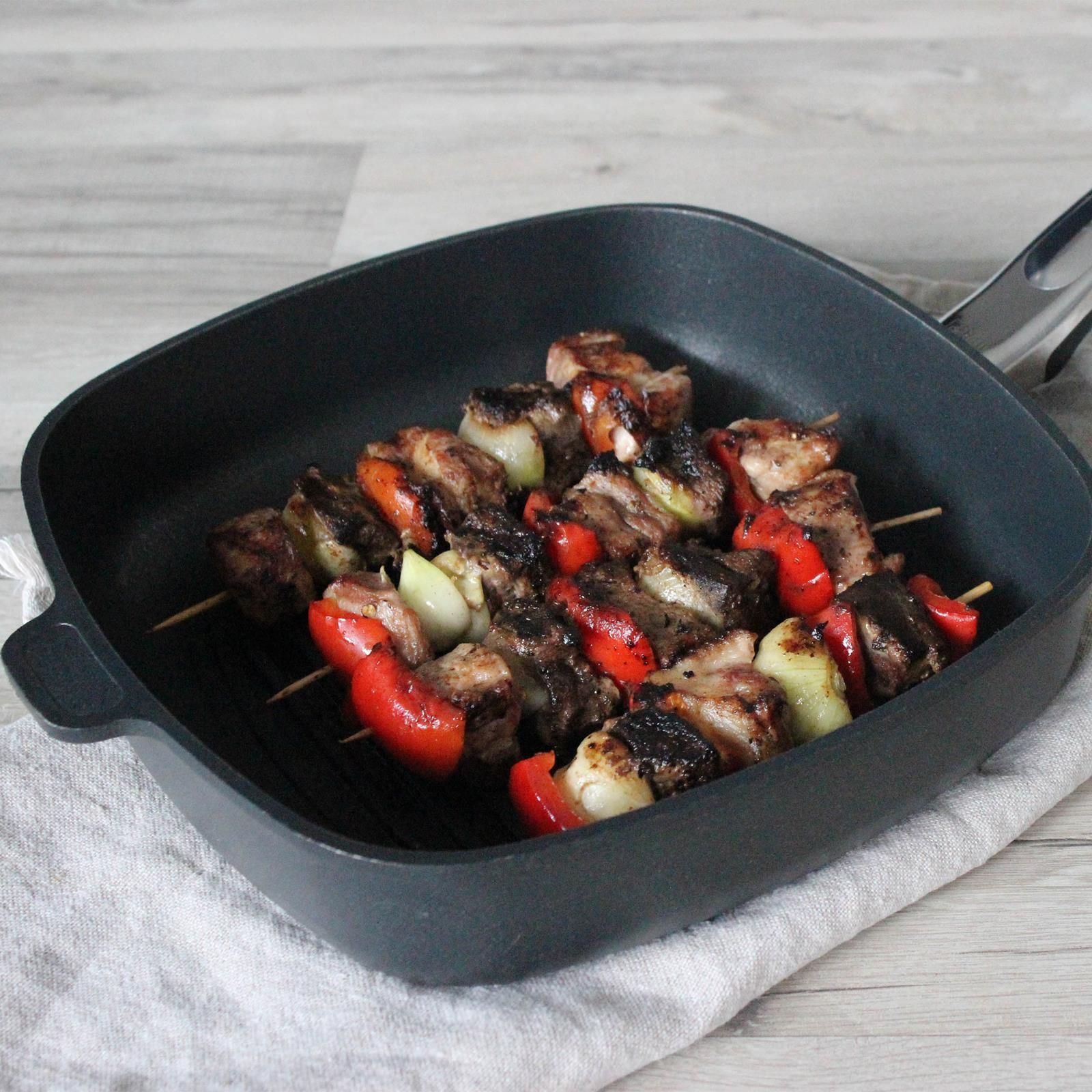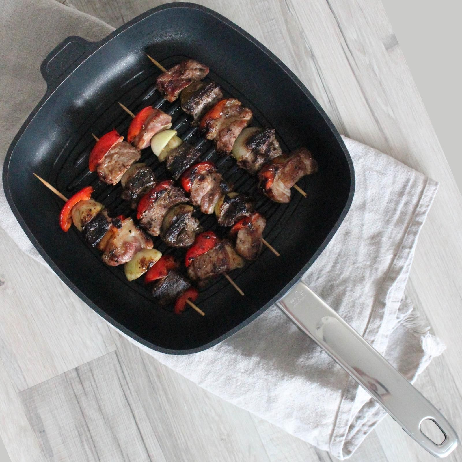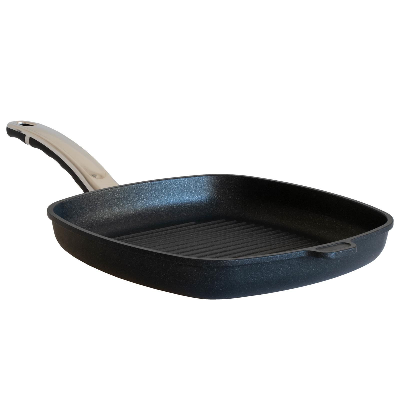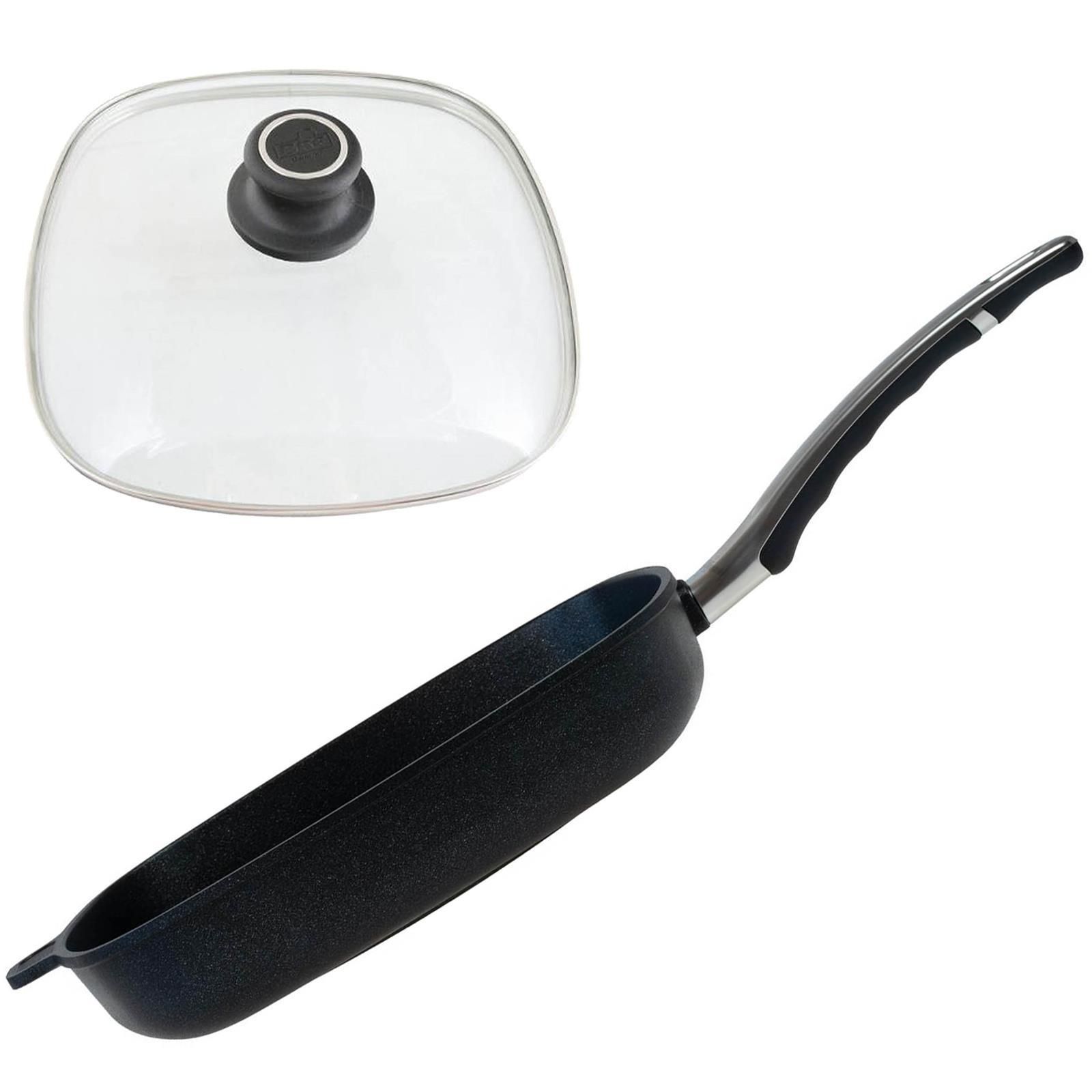 BAF BAF Eck-Grillpfanne 28x28cm Induktion Aluguss Pfanne Antihaft beschichtet Deckel