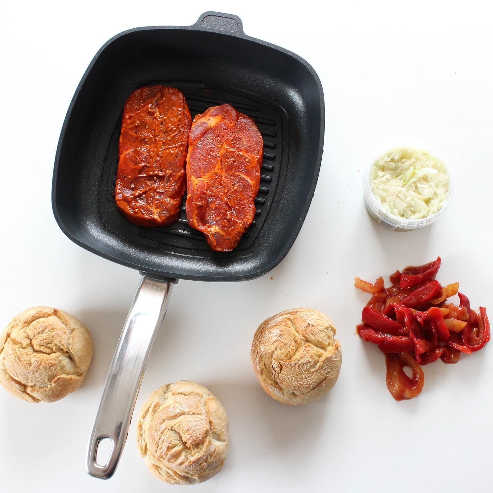 BAF BAF Grillpfanne 28x28 cm Induktion Aluguss Bratpfanne eckig Antihaft beschichtet