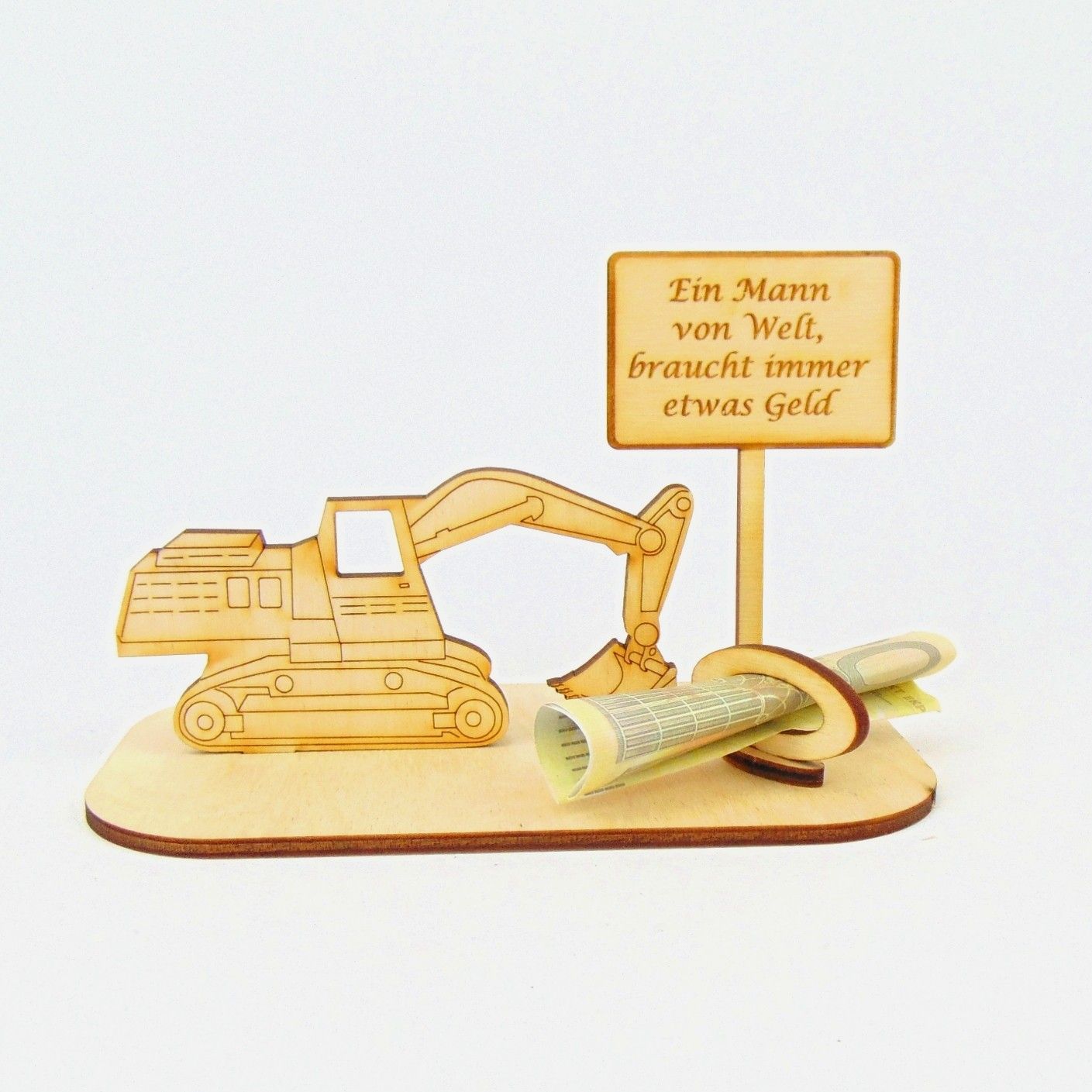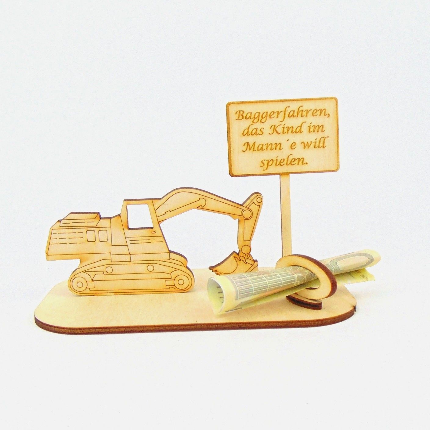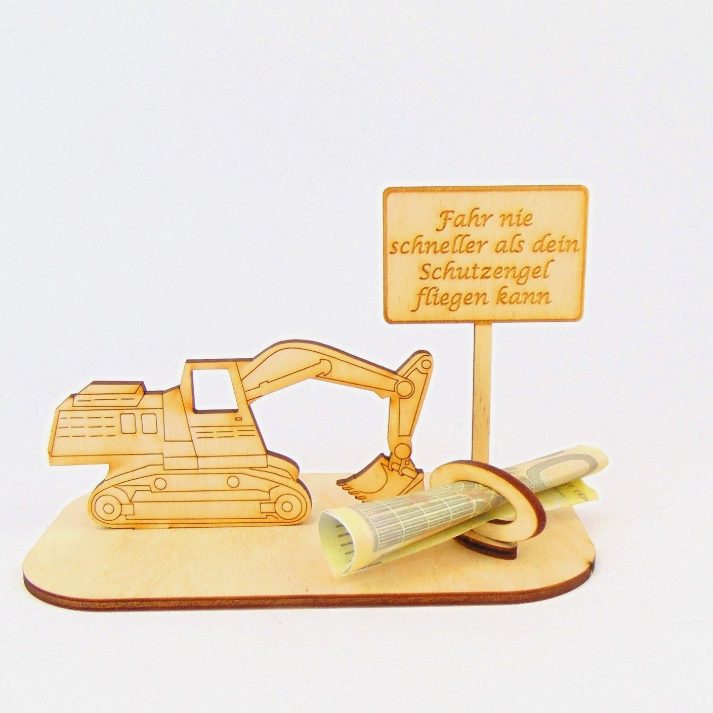 Bagger Geld und/ oder Gutschein Geschenk aus Holz "Sprüche " Personalisiert -K-39-