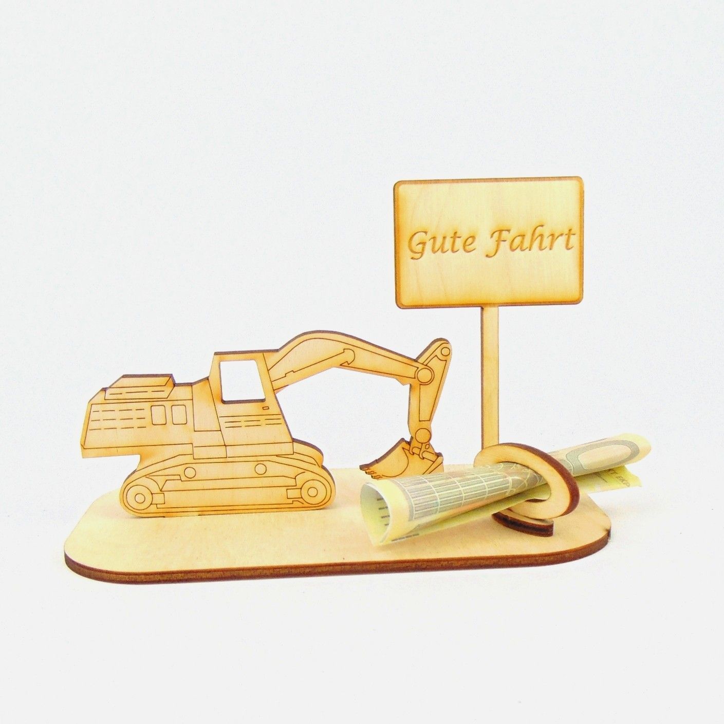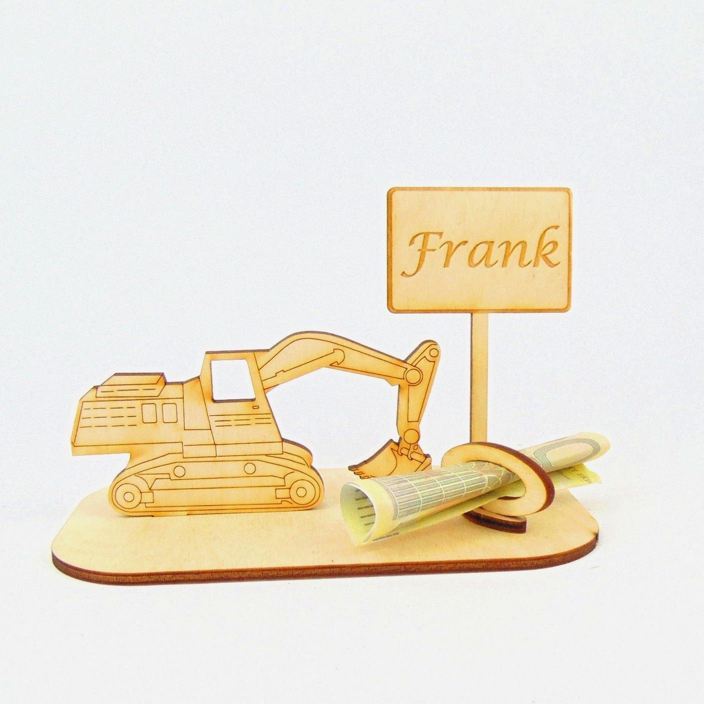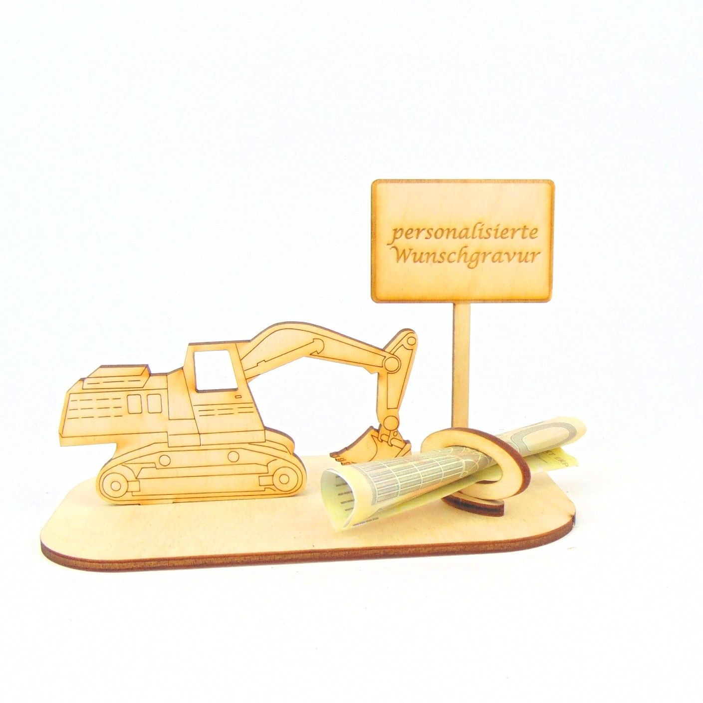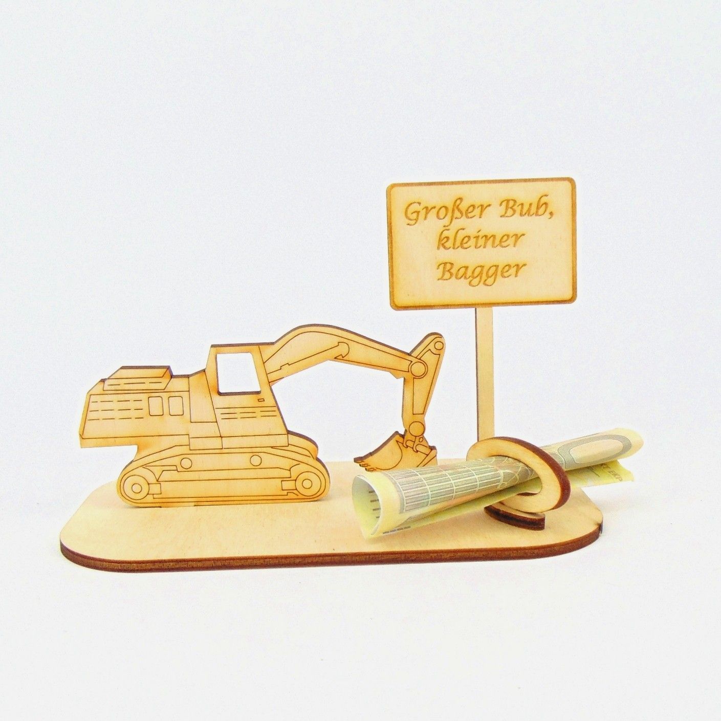 Bagger Geld und/ oder Gutschein Geschenk aus Holz "Sprüche " Personalisiert -K-39-