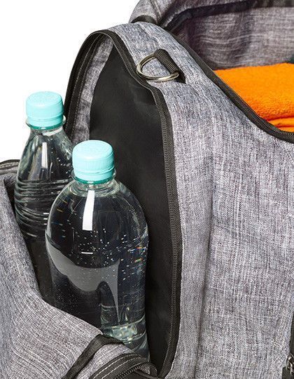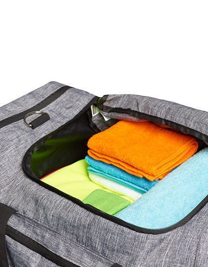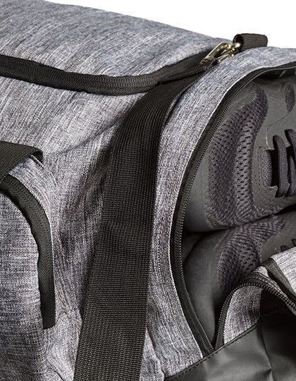 Allround Sports Bag - Atlanta bags2GO 600D Polyester Allround Sporttasche in Grey-Melange Ein Hauptfach mit langem Reißverschluss in U-Form Eine Reißverschluss-Tasche auf der Front Zwei Reißverschluss-Seitentaschen, davon eine als Wäsche- Schuh-Fach zu benutzen Alle Reißverschlüsse in Schwarz, Gummi
