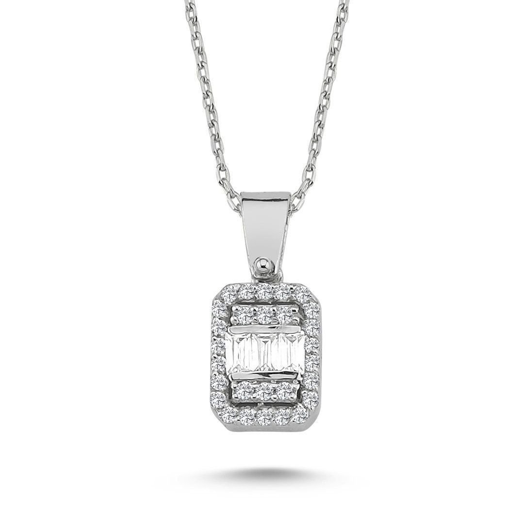 Baguette und Brillant Schliff Diamant Halskette in 14 Karat Weißgold