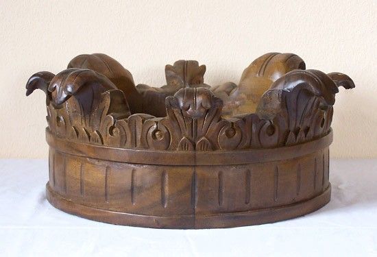 Baldachin Betthimmel RUND Ø 48 cm HOLZ BRAUN Moskitobetz ANTIK-STIL