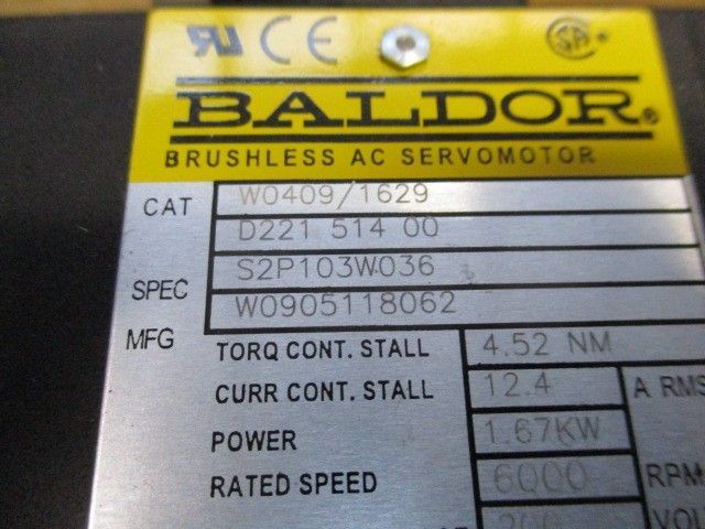 BALDOR W0409 1629 Brushless AC Servomotor D221 514 00 Versandkosten ins Ausland auf Anfrage. Bitte Land, Ort und Postleitzahl angeben. Gerät kommt aus der Industrie, wurde getestet und ist voll funktionsfähig. Die Ware wird ausschließlich als Gebrauchtware und Ersatzteilspender, unter Ausschluss jeg... Mehr