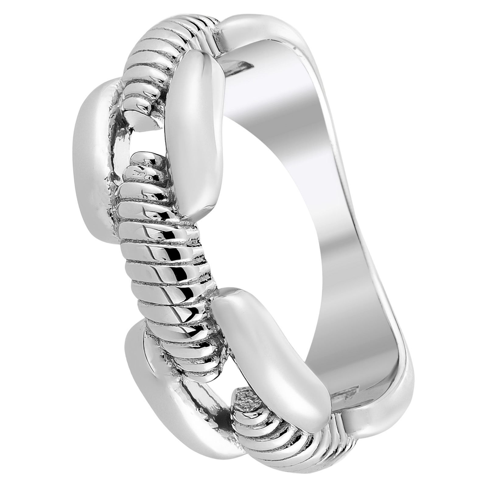 Moderner breiter Silberring Ring aus 925er Sterling. Der Ring besticht mit einer massiven Ketten Optik. Der Ring hat eine Größe von 62 (19,7).