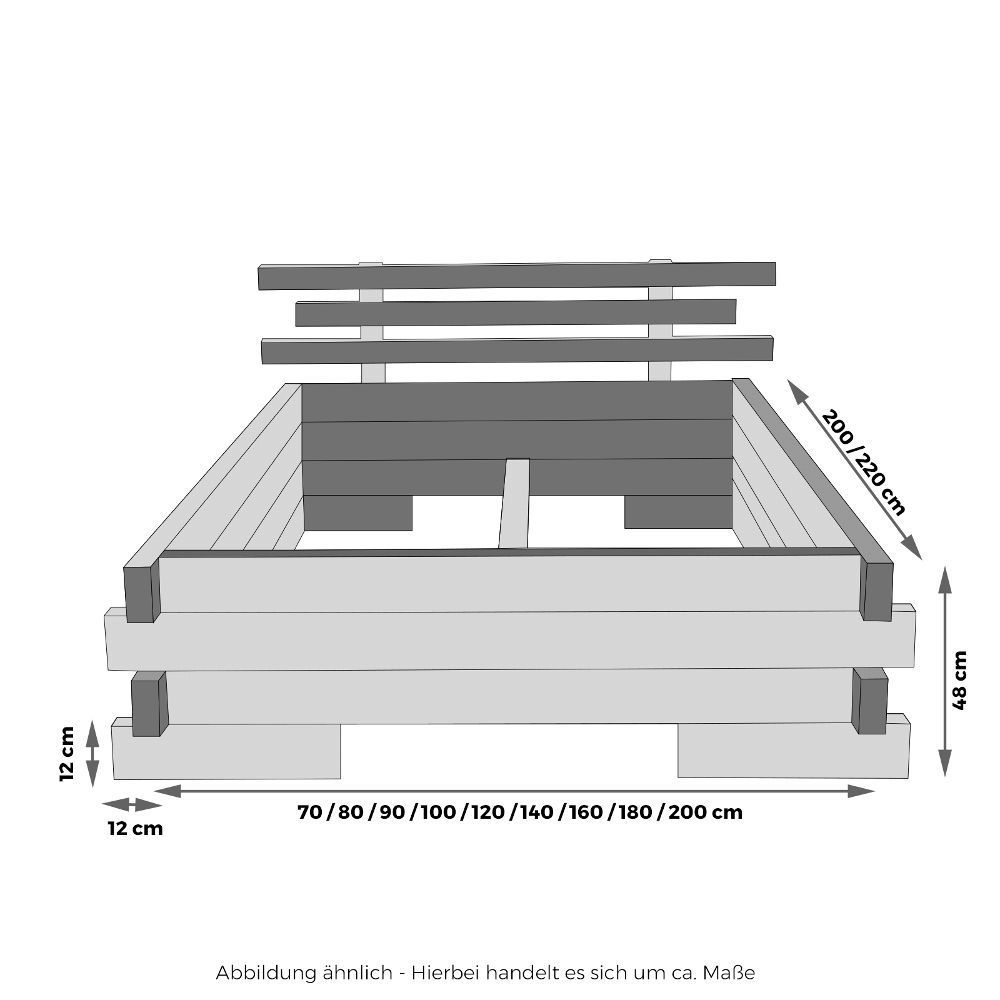 Balkenbett Massivholzbett Daybett Boxspringbett 90 120 140 160 180 200 x 200 220