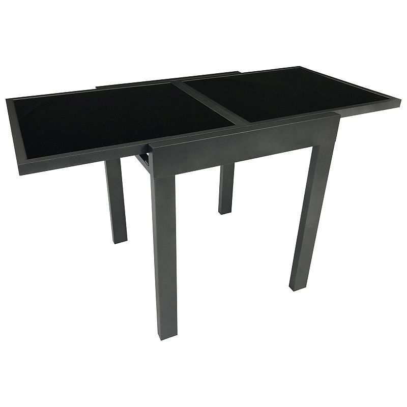 Balkon Ausziehtisch 65/130x65cm Aluminium anthrazit Glas schwarz