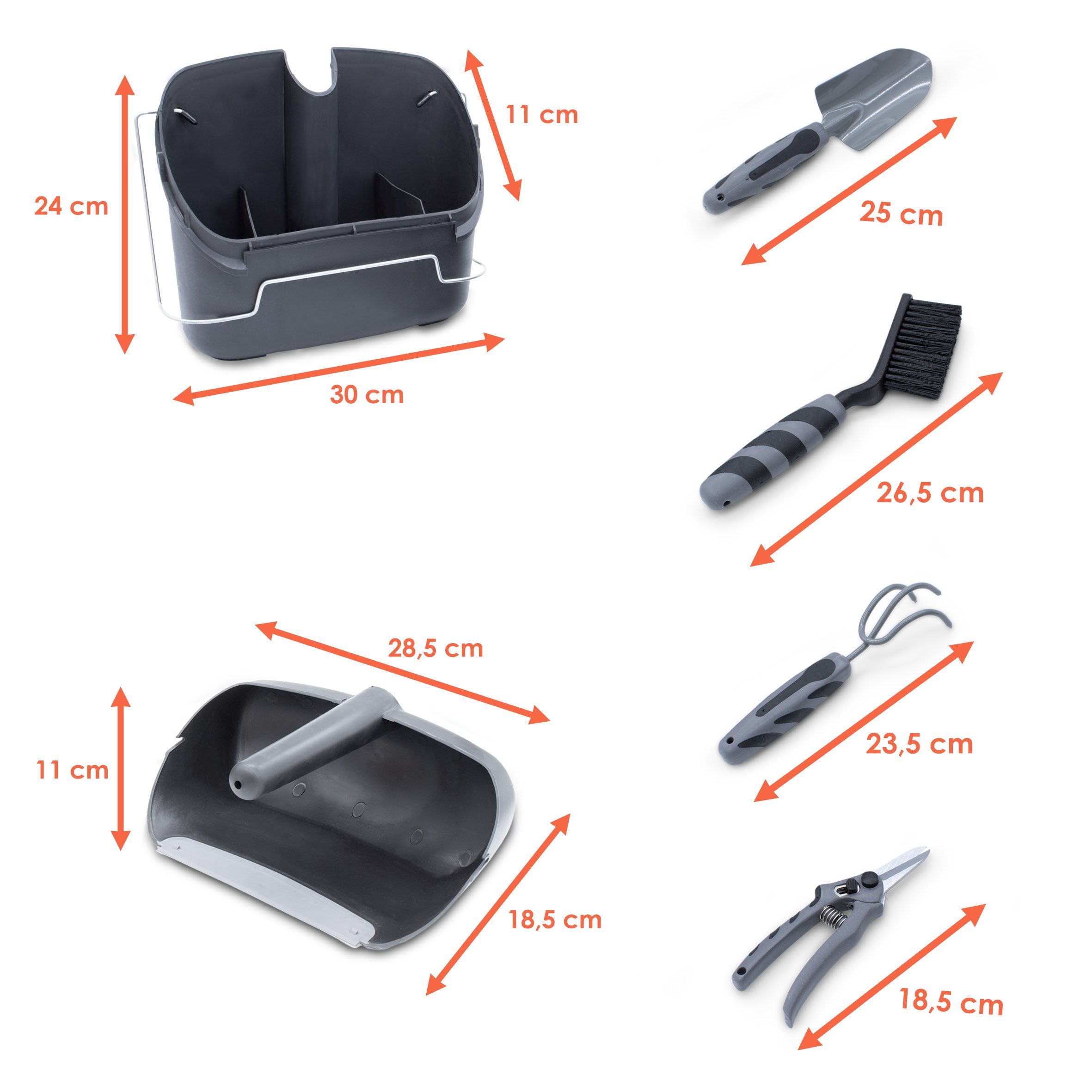 Balkon Garten Werkzeug Box - 6-teilig - Schaufel Harke Rosen Schere Kehr Set