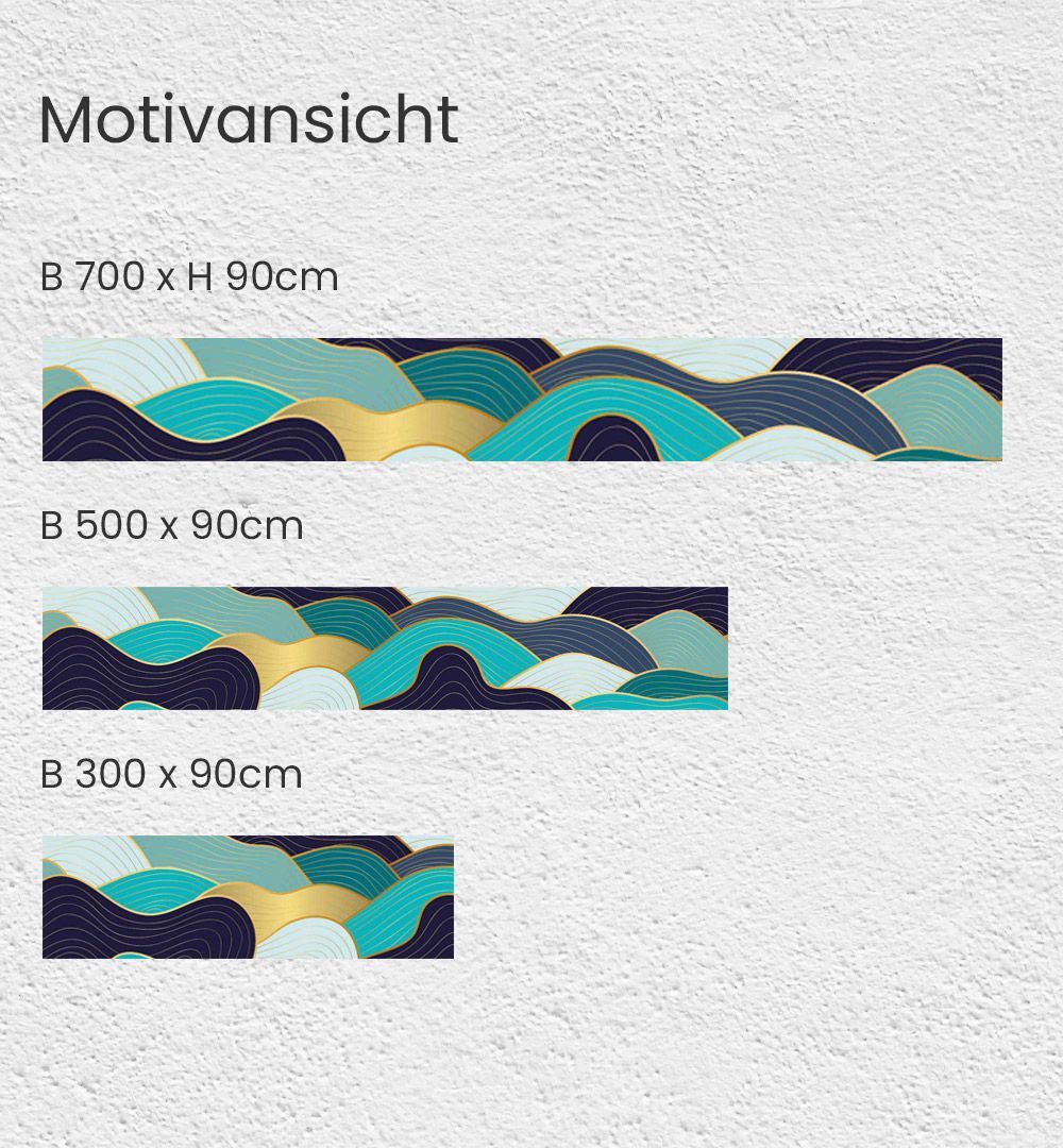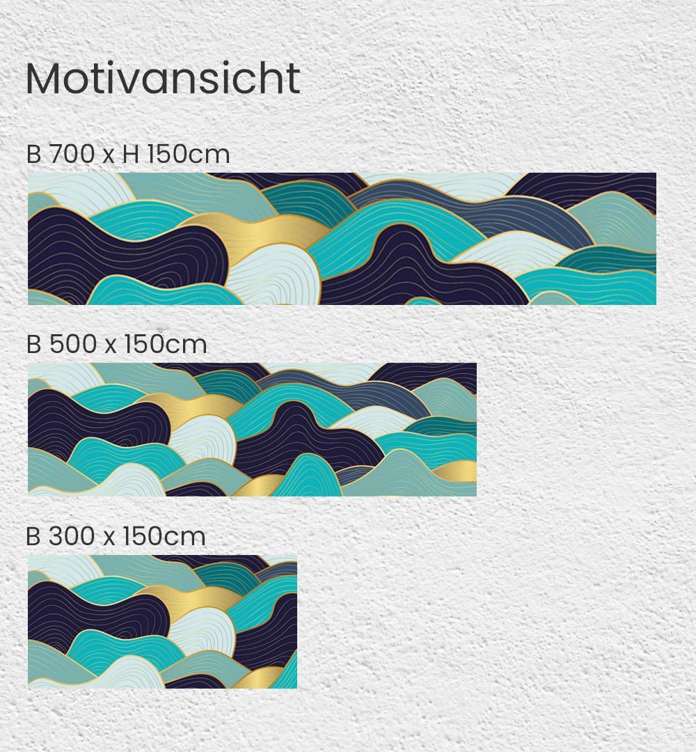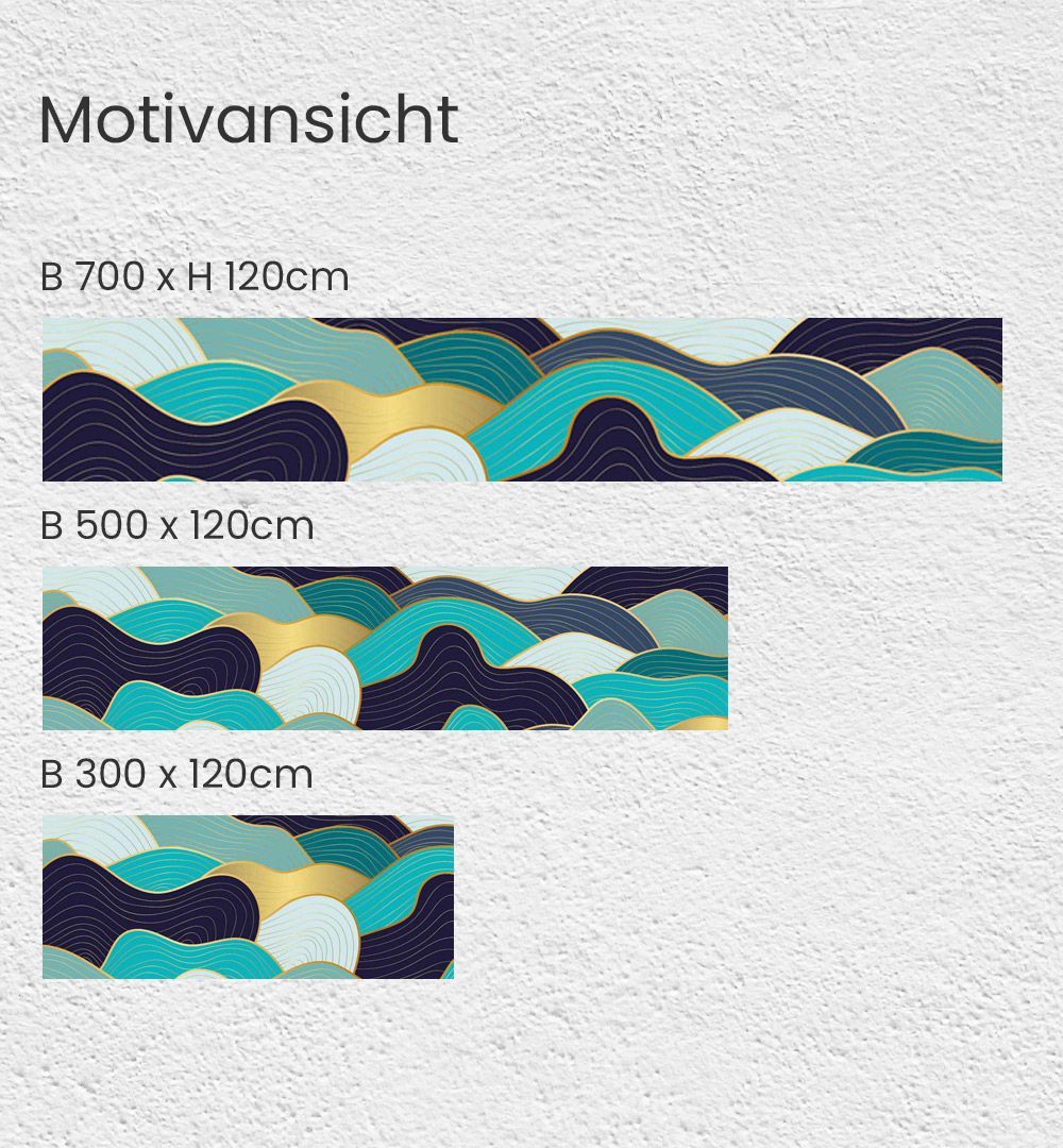 Balkonbanner blau gold minimalistische Wellen Balkon Sichtschutz Garten