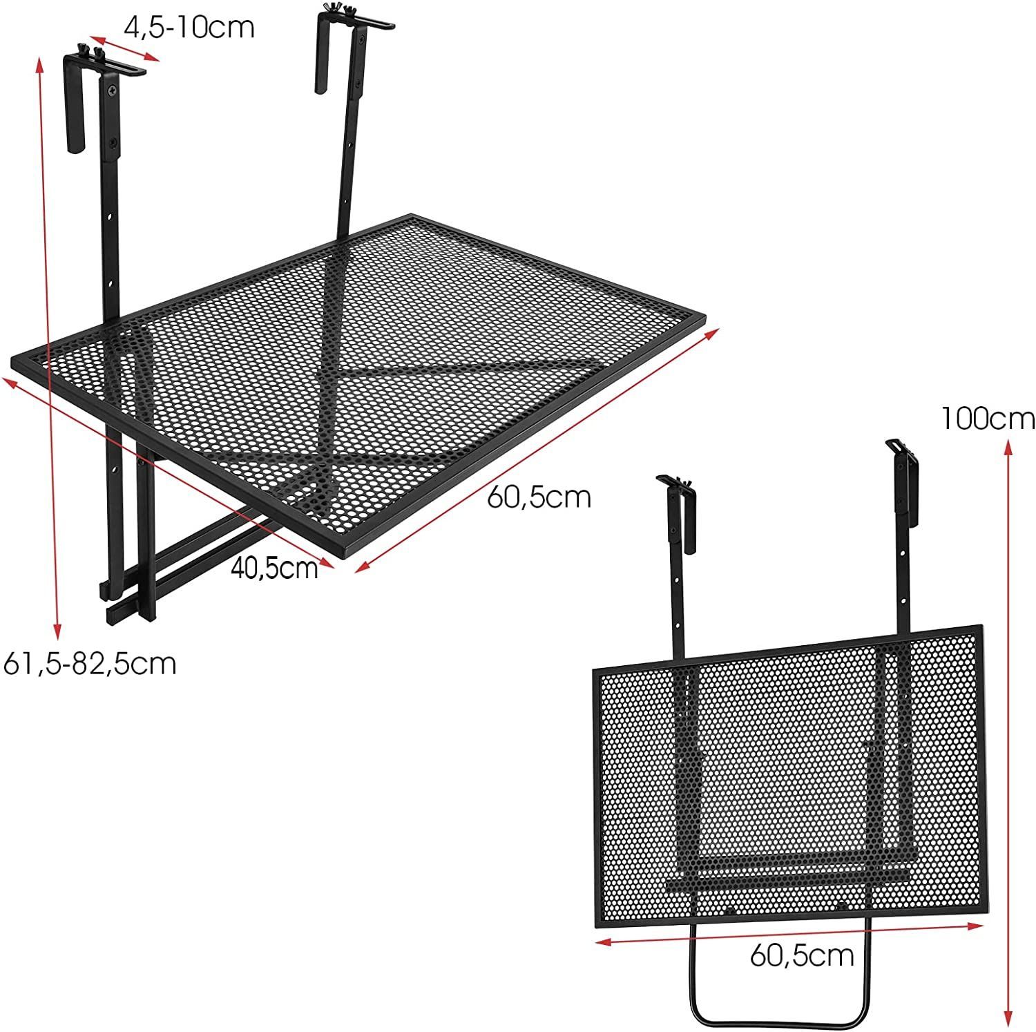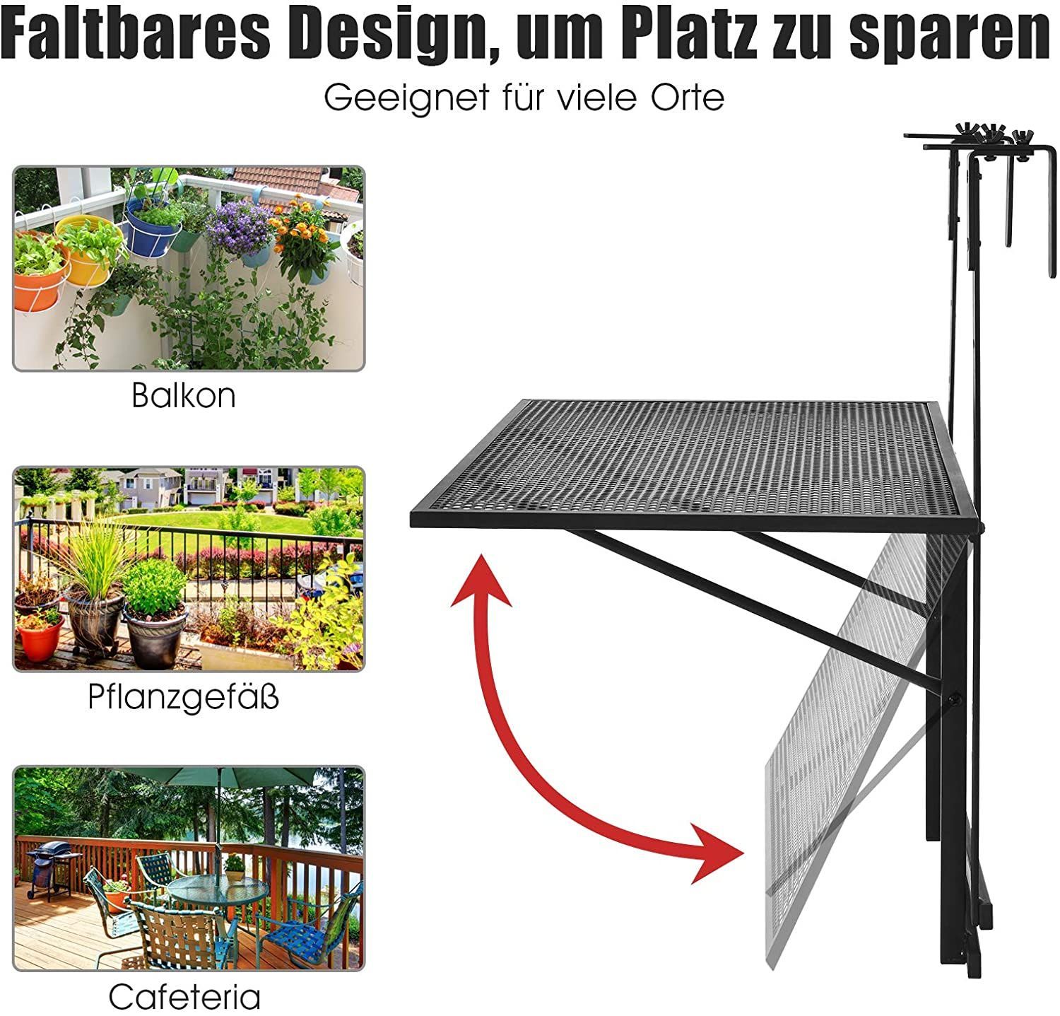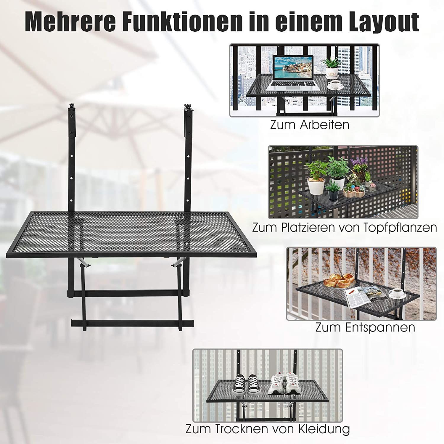 Balkonhängetisch 5-stufig höhenverstellbar, Hängetisch Esstisch Eisen belastbar 20 kg