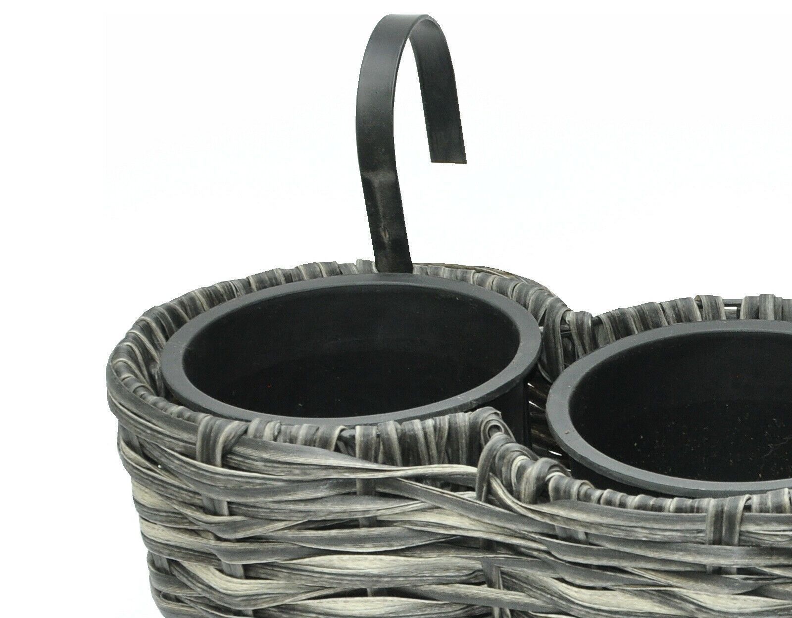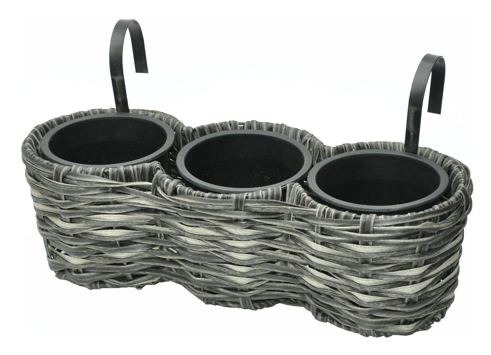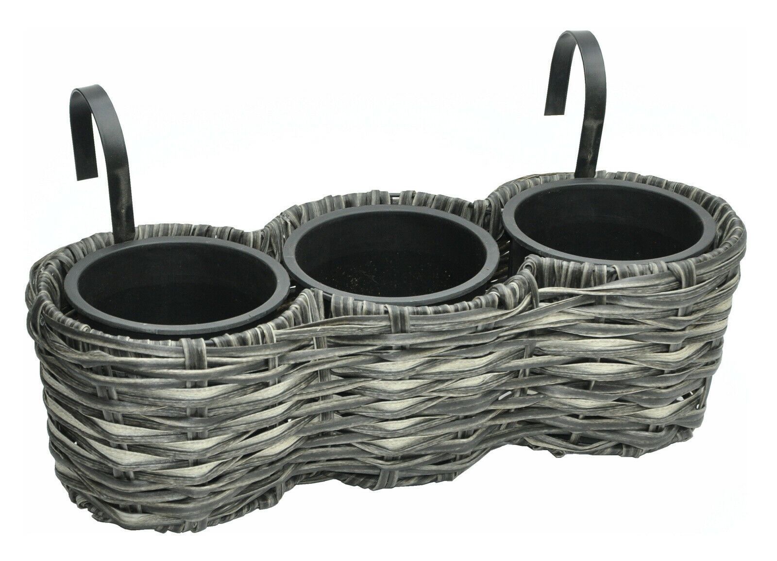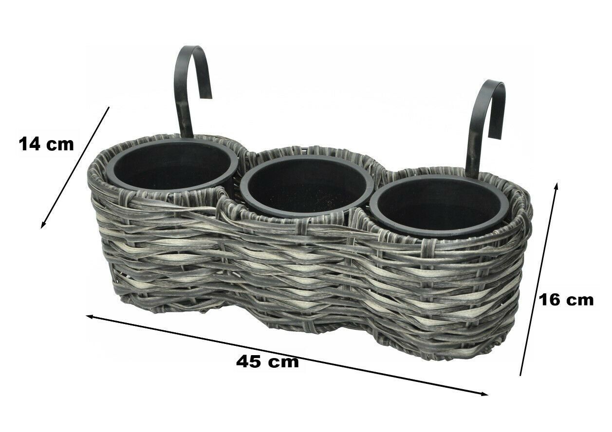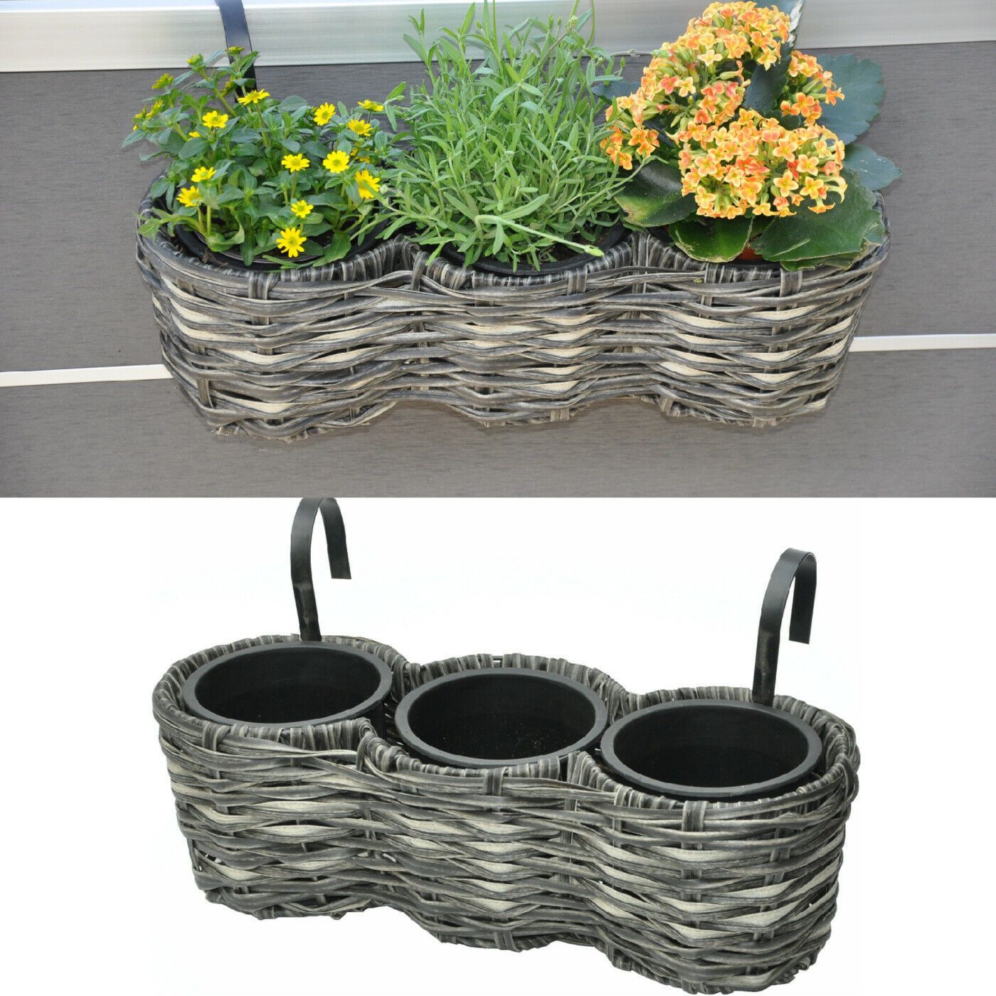 MENÜ Close Bild vergrößern Balkon Pflanzkasten Korsika Polyrattan mit Einsätzen - 45x16x14 cm Holen Sie sich die Natur auf Ihren Balkon. Mit den fest montierten Bügeln können Sie den Pflanzkasten stabil an das Balkongitter befestigen. Dank des wetterfesten Materials können Sie den Blumenkasten ganzj