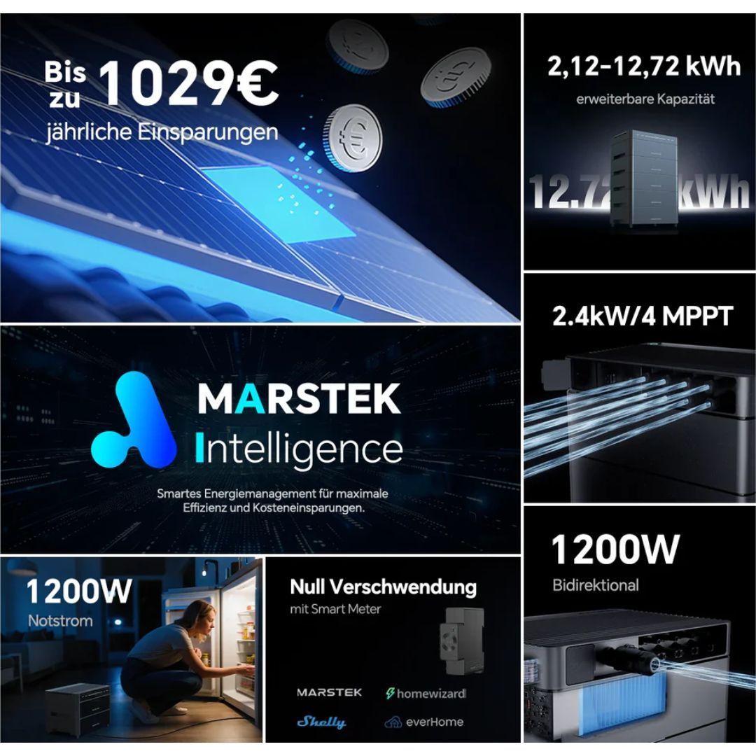 Balkonkraftwerk 2000+ Watt mit Speicher Marstek Venus A 4,24 kW, Notstrom-Funktion