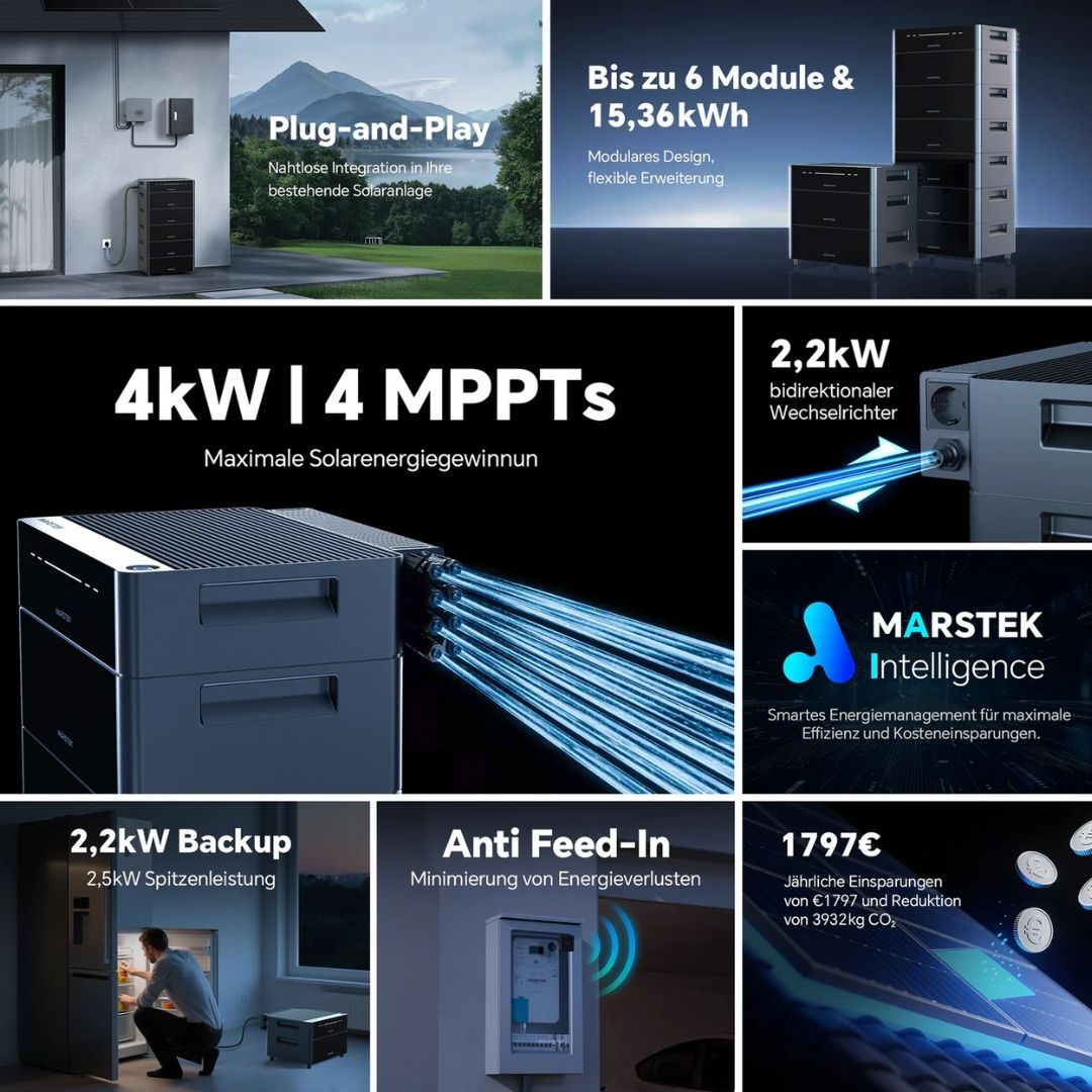 Balkonkraftwerk 2000+ Watt mit Speicher Marstek Venus D 5,12 kW Halterung Smartmeter