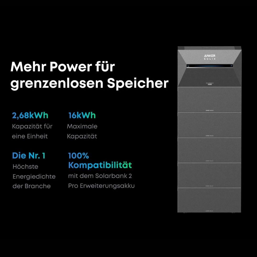 Balkonkraftwerk Speicher Anker Solarbank 3 PRO 2,7 kWh, bis zu 8 Solarmodule