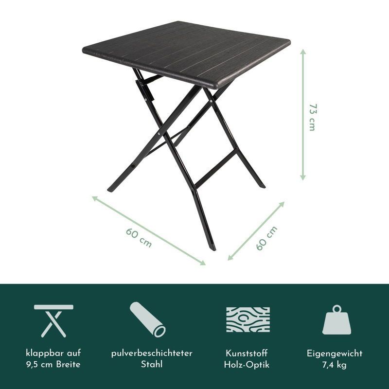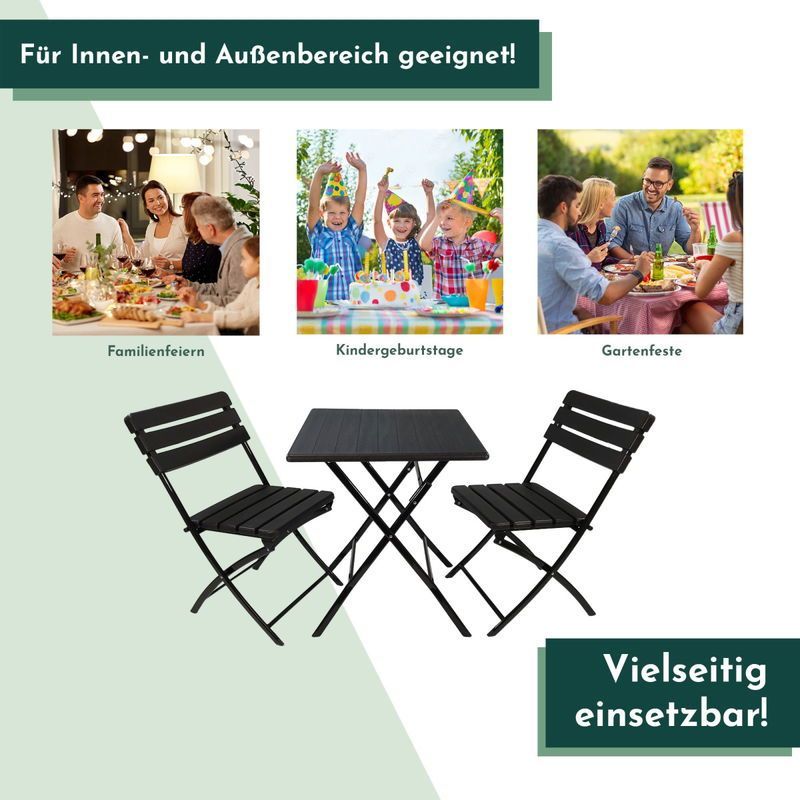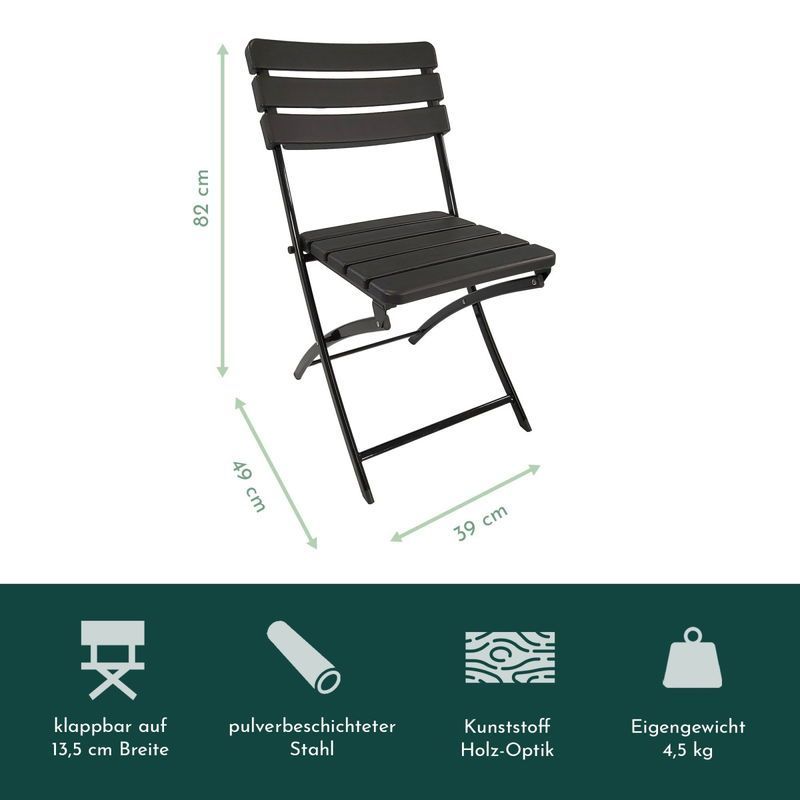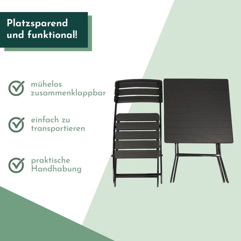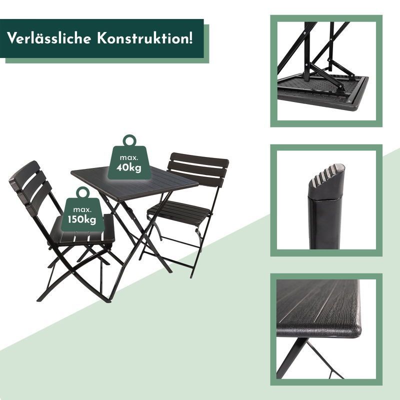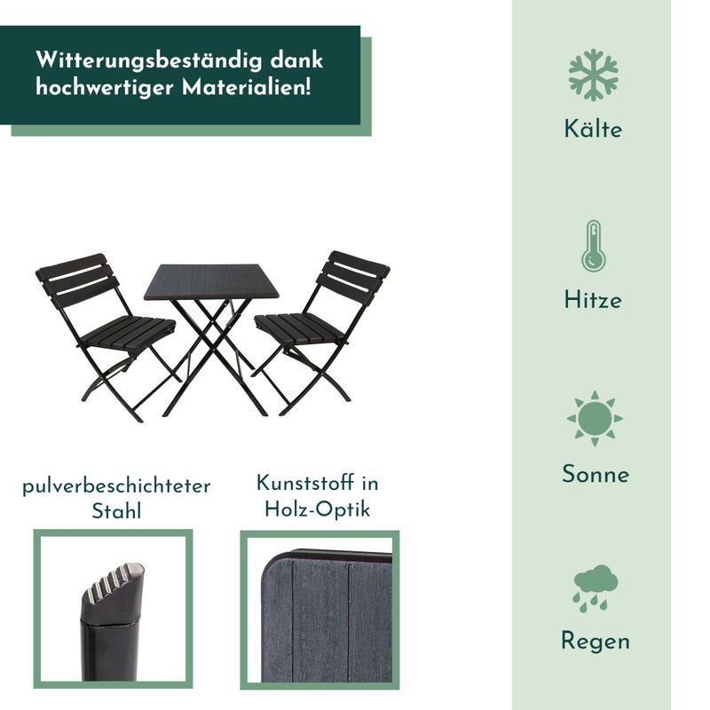 Balkonmöbel Set 3teilig, klappbar, 2x Balkonstühle + 1x Balkontisch, Holzoptik