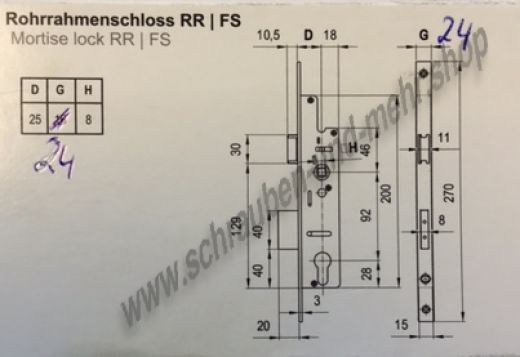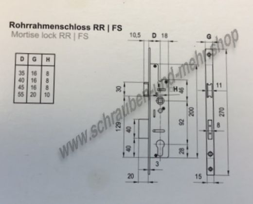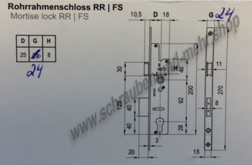Balkontür Rohrrahmen Einsteckschloss mit Profilzylinder passende Schraube
