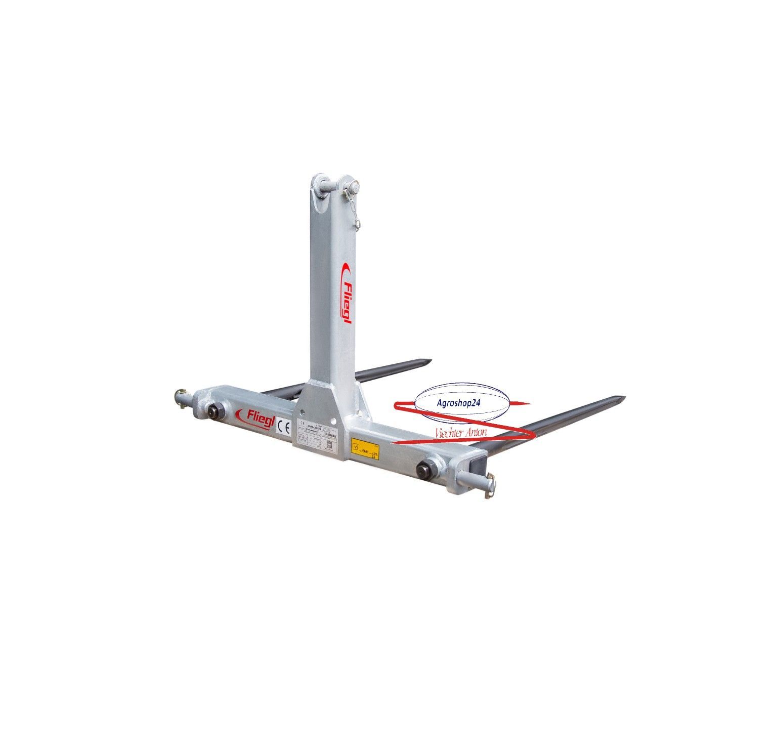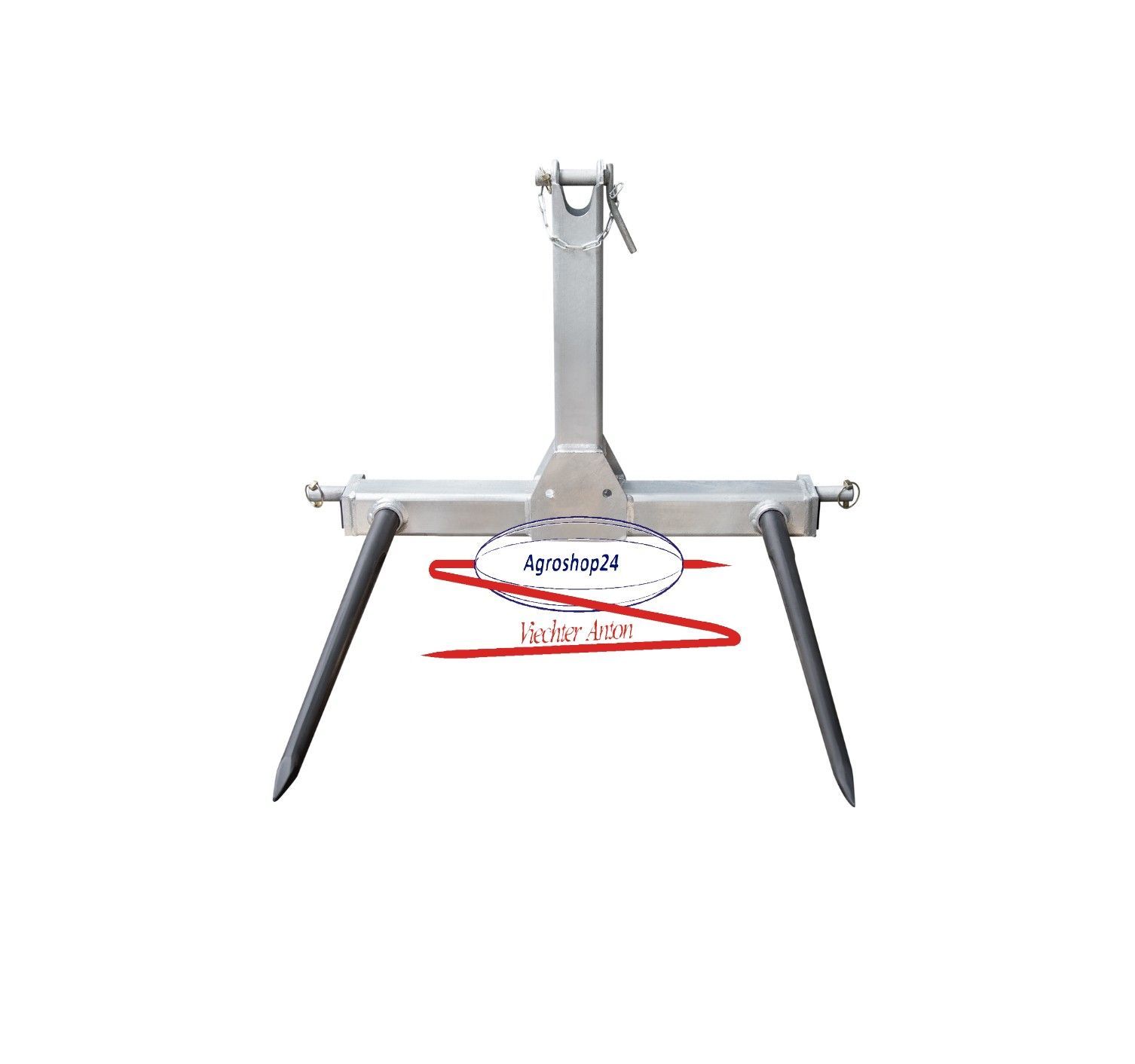 Ballentransportgerät - Ballengabel in Kreuzausführung Starre Zinken mit einer Länge von 810mm Aufnahme Kat II Gewicht ca.30kg Verzinkt. Extra Lange Konus Büchsen gegen verbiegen der Zinken