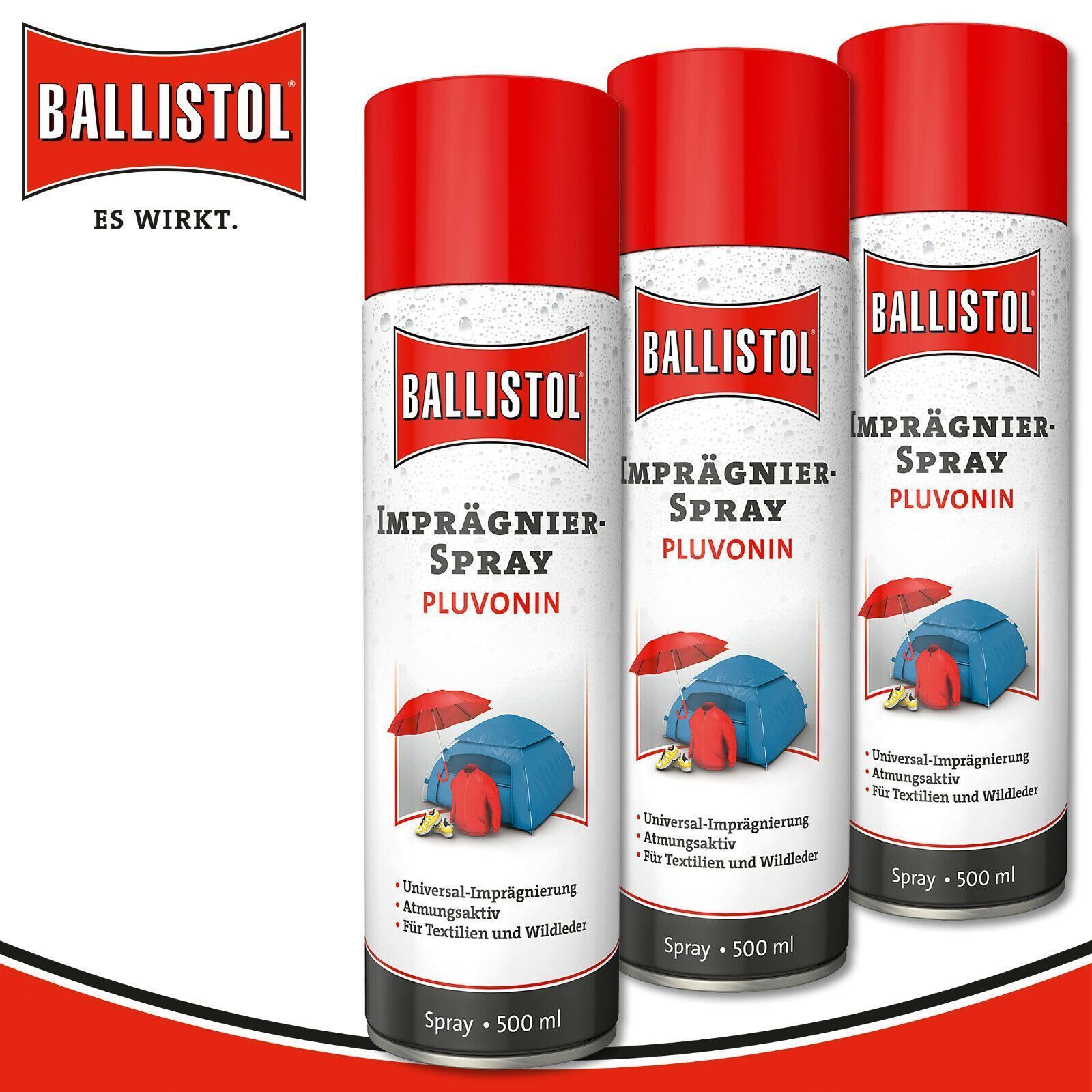 Ballistol 3 x 500 ml Imprägnierspray PLUVONIN Pluvonin bietet eine extreme wasser- und schmutzabweisende, atmungsaktive Abperl-Beschichtung für alle Natur- und Kunstfasern sowie Leder, auf Basis modernster Technologie. Pflegt und imprägniert alle Textilien und Wildleder, die auch widrigster Witterun