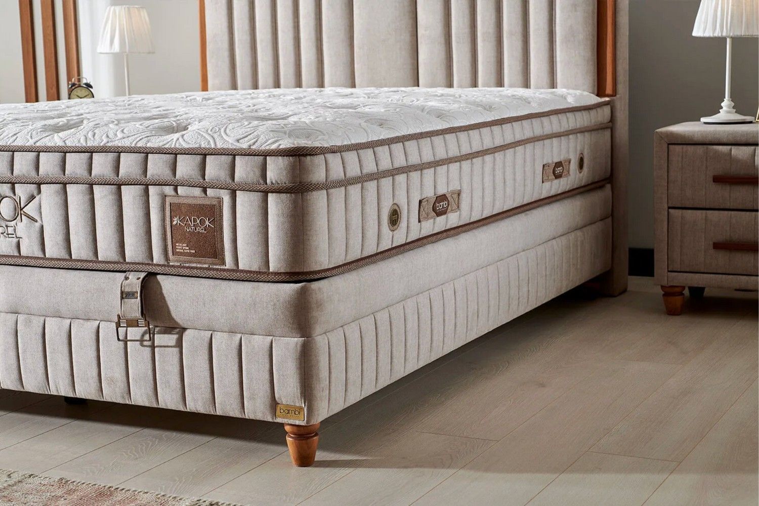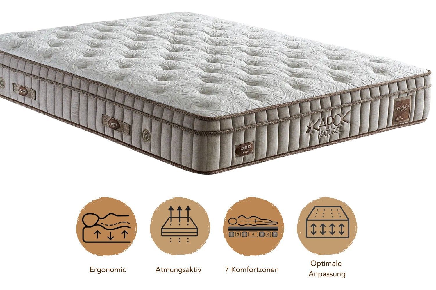 Bambi Boxspringbett mit Matratze & Stauraum Kapok Naturel Bett 90/120/140/160/180x200