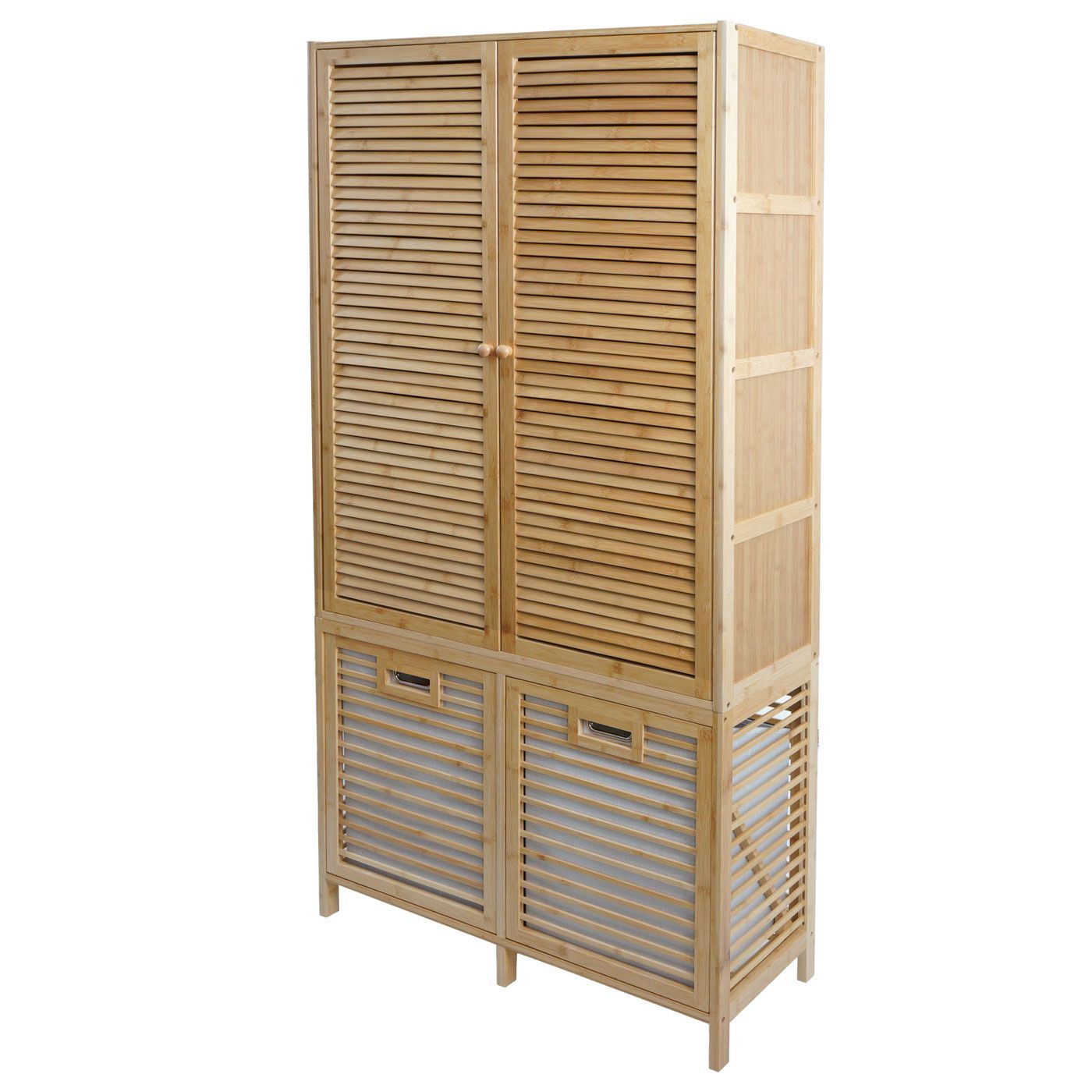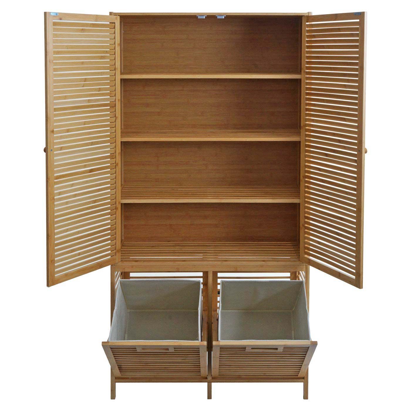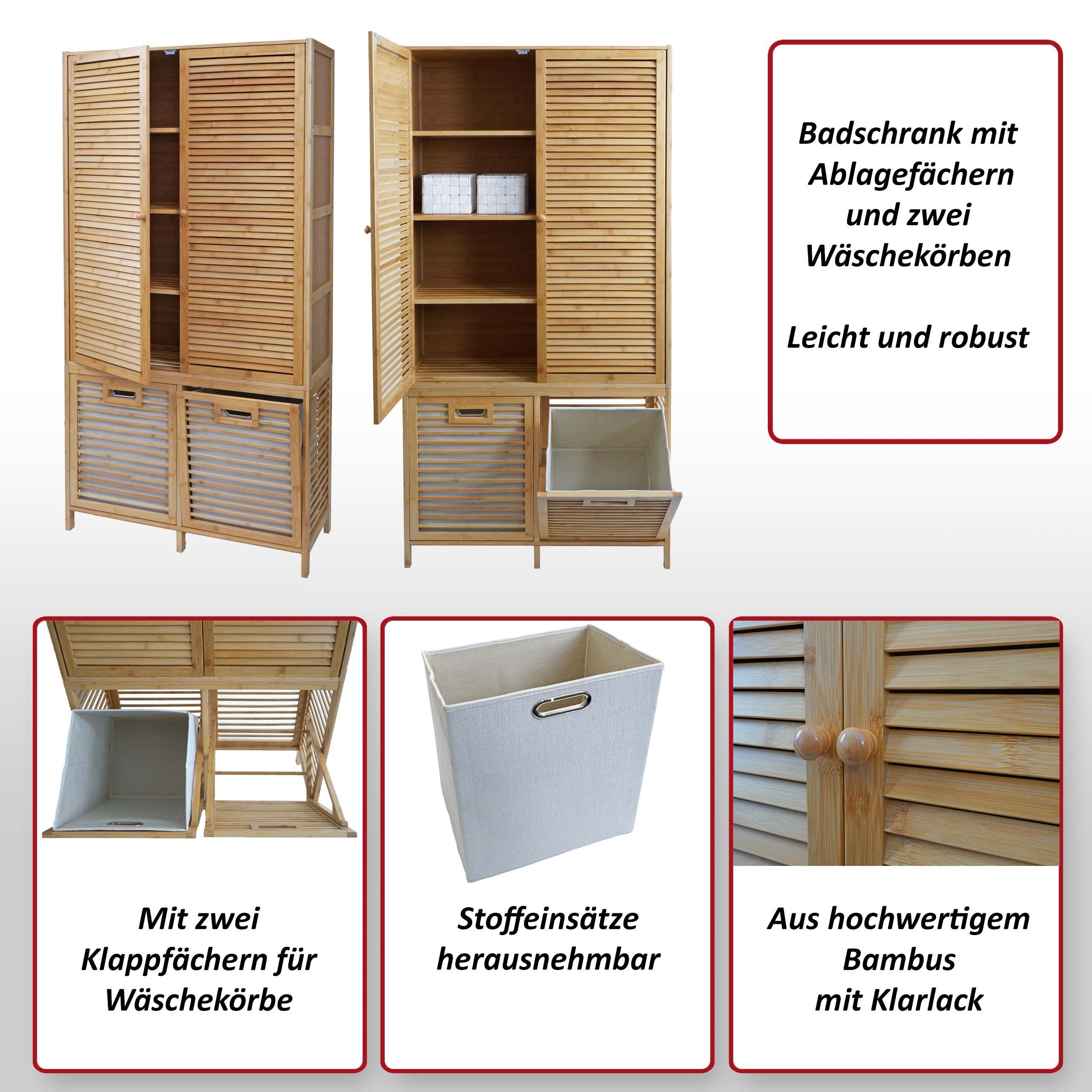 Mendler Bambus Badezimmerschrank HWC-N83, Regal Schrank, 2 Wäschekörbe Türen FSC® 168x82x34cm