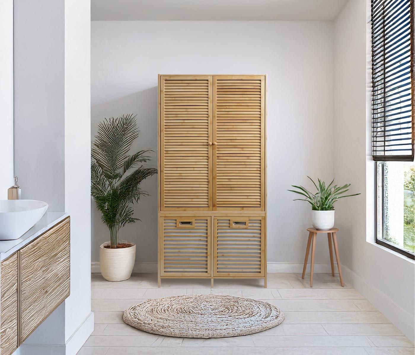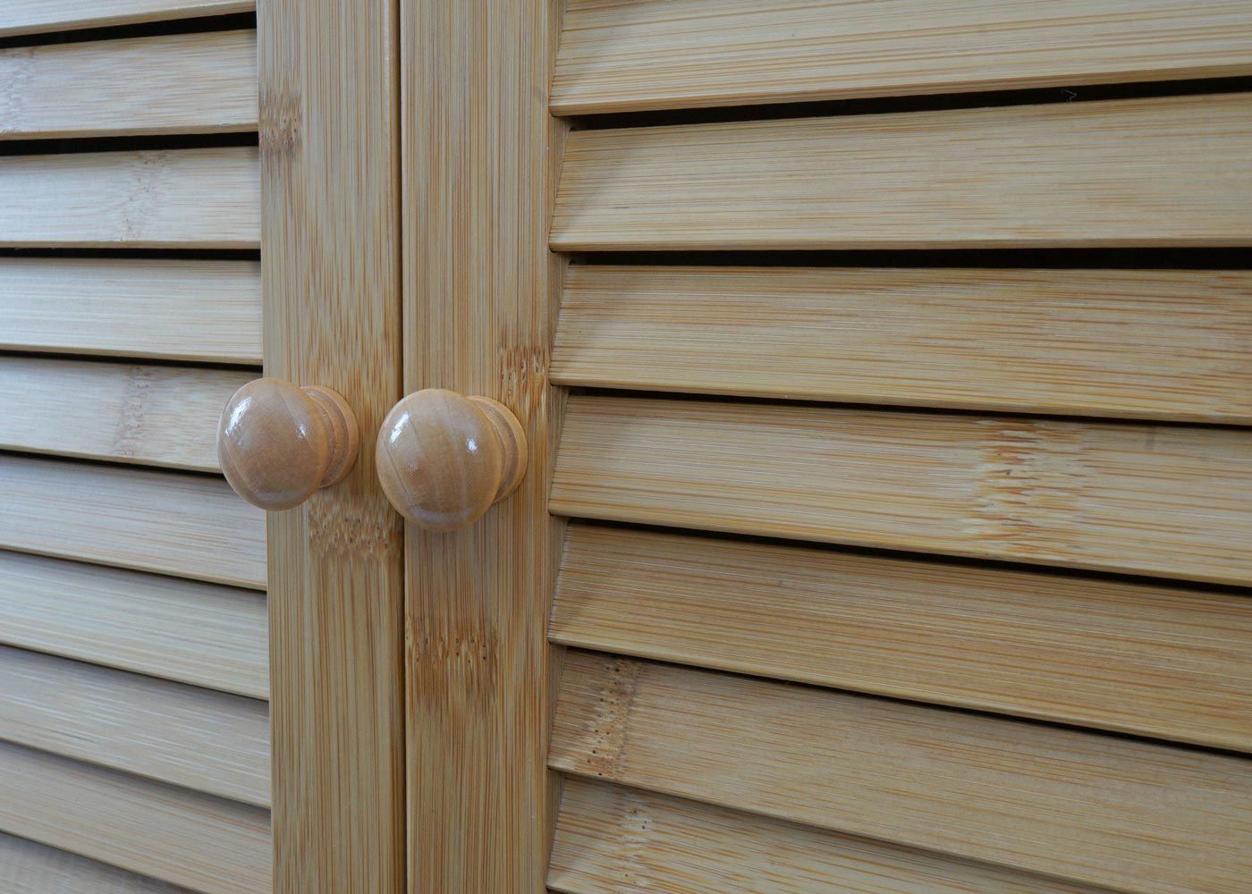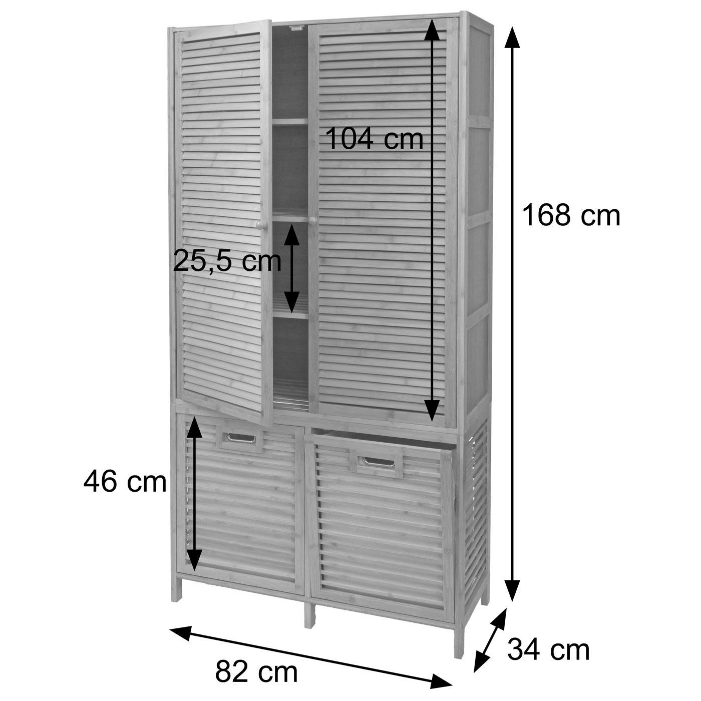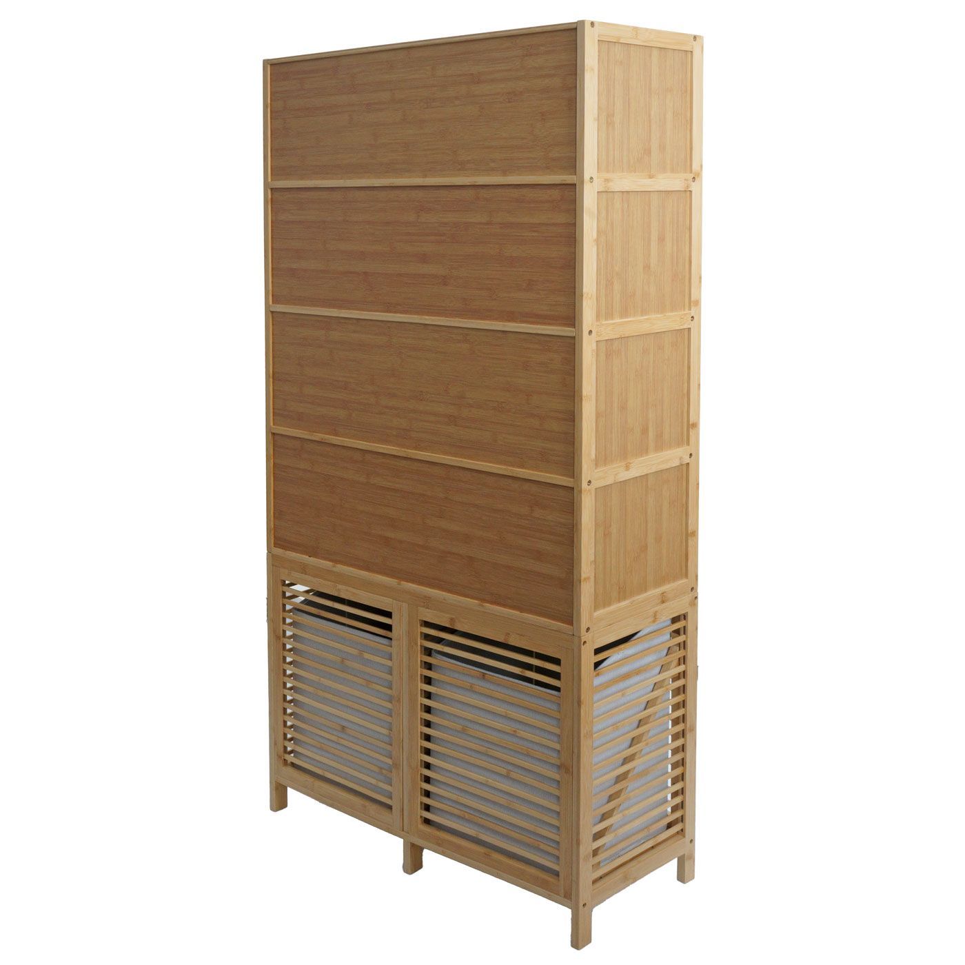 Mendler Bambus Badezimmerschrank HWC-N83, Regal Schrank, 2 Wäschekörbe Türen FSC® 168x82x34cm