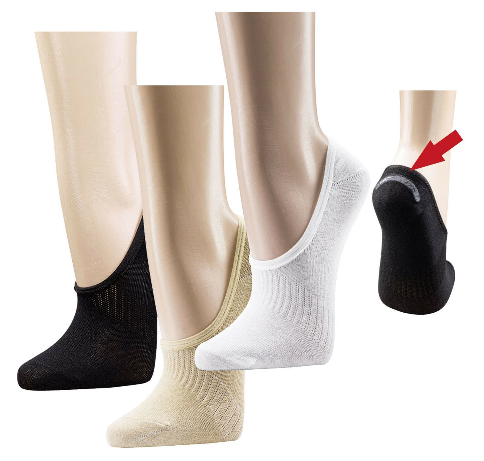 Füßlinge mit Bambus im 3er Pack mit Viskose aus Bambuszellstoffen, mit Silicon-Pad Schonen Fuß und Schuh. Rippenstrick in der Fußmitte für besonders gute Passform. Das Silicon-Pad innen an der Ferse verhindert das lästige Rutschen! für Damen und Herren, Handgekettelt. Spitze und Ferse verstärkt Farb
