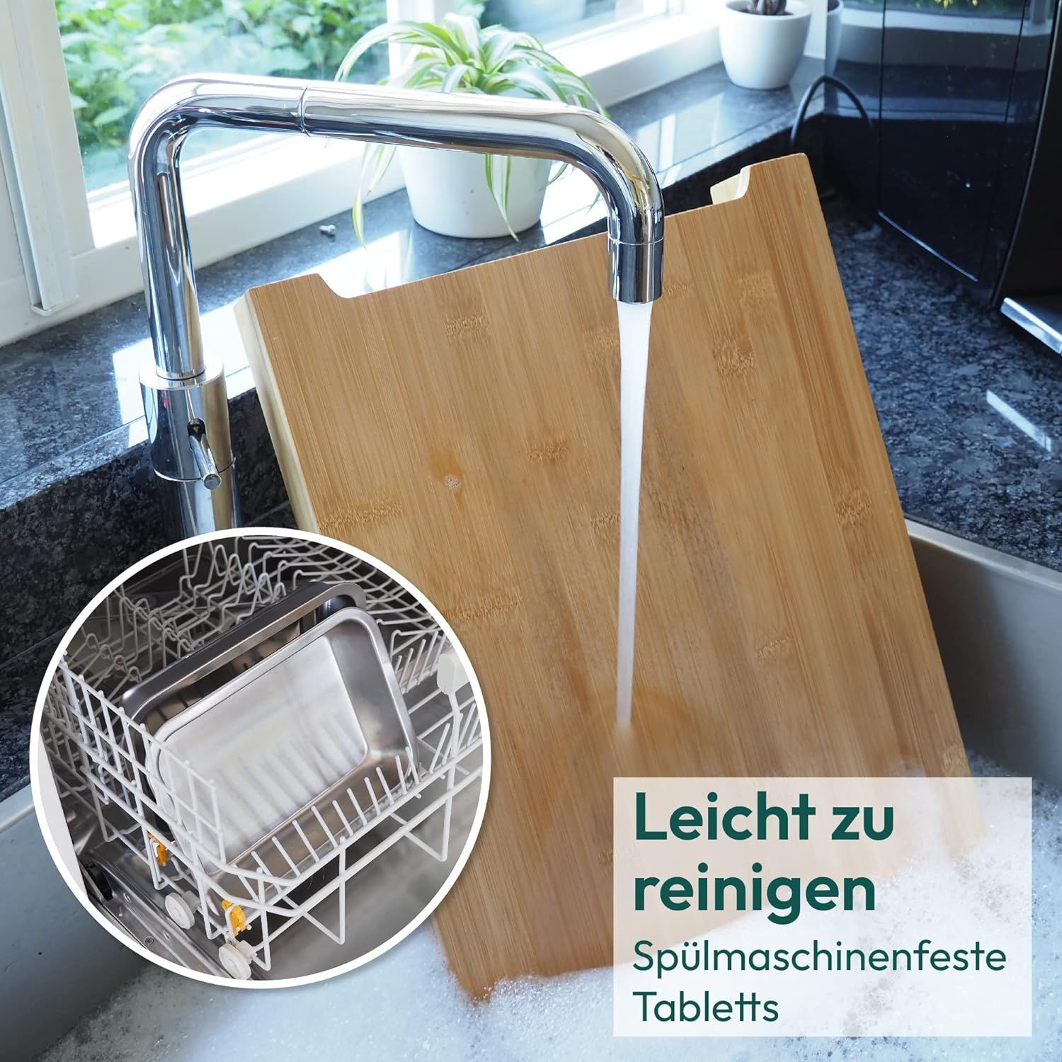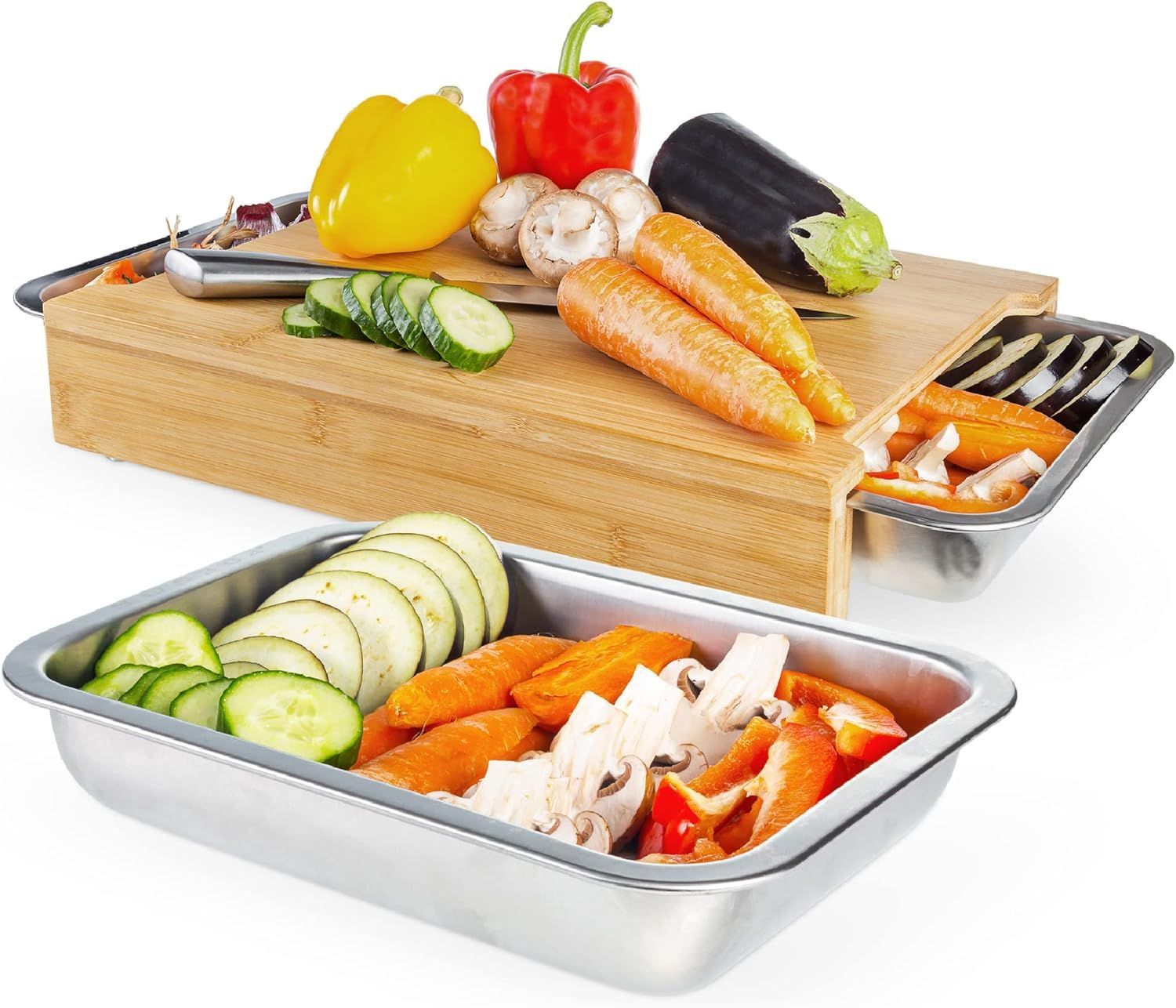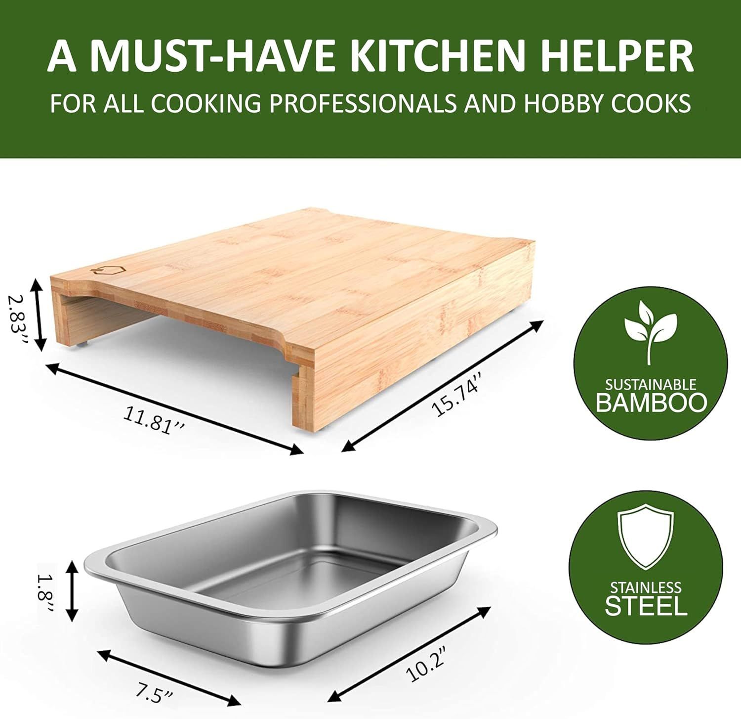 Bambus Schneidebrett mit 2 Auffangschalen aus Edelstahl