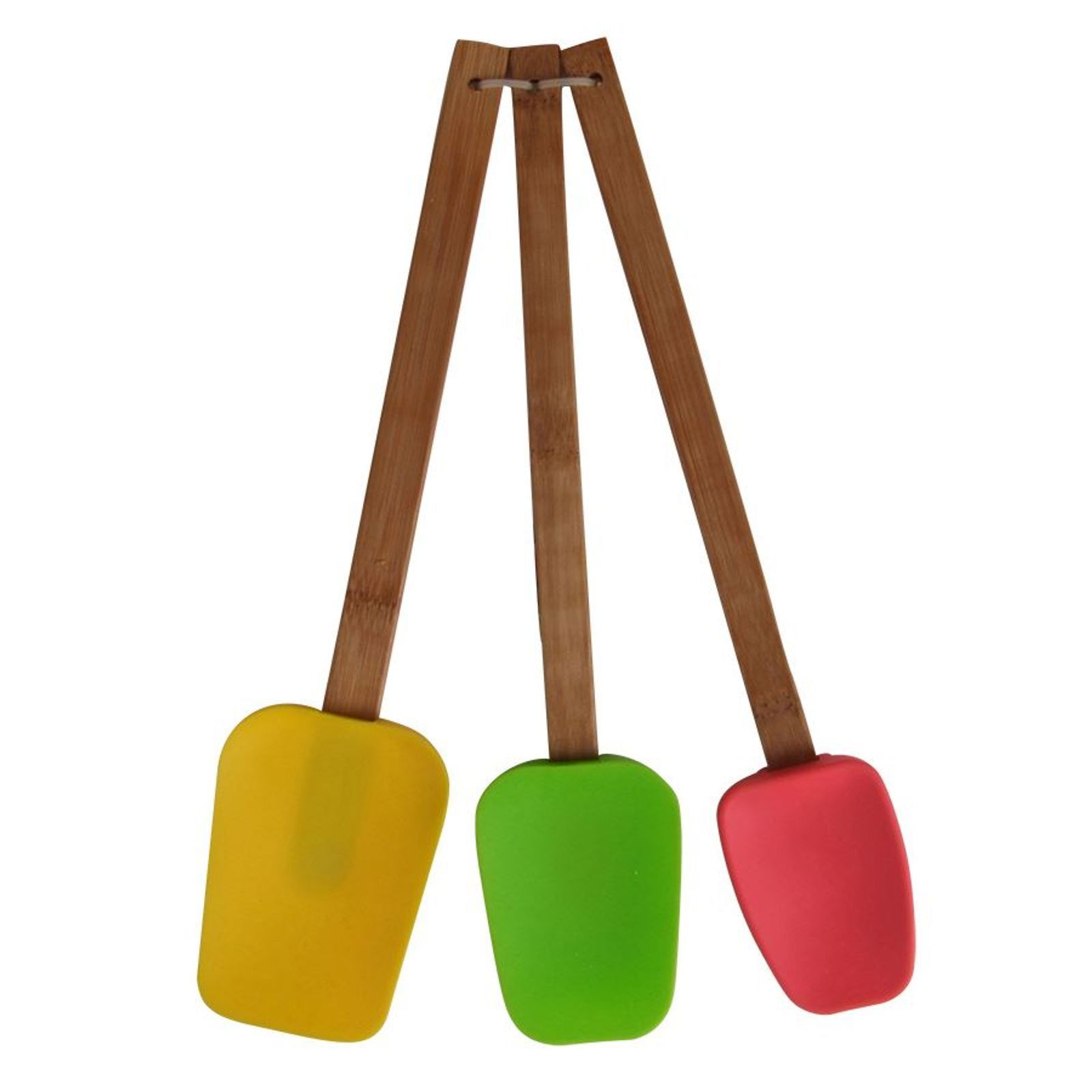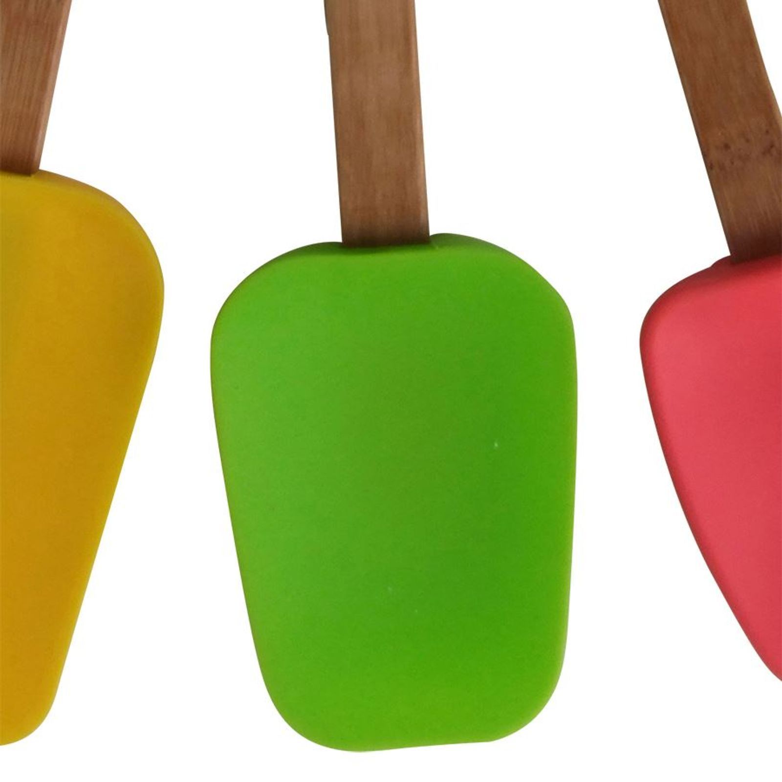Bambus-Silikon-Teigschaber 3-teilig Bunt Teigspachtel Teigkratzer Küchenhelfer