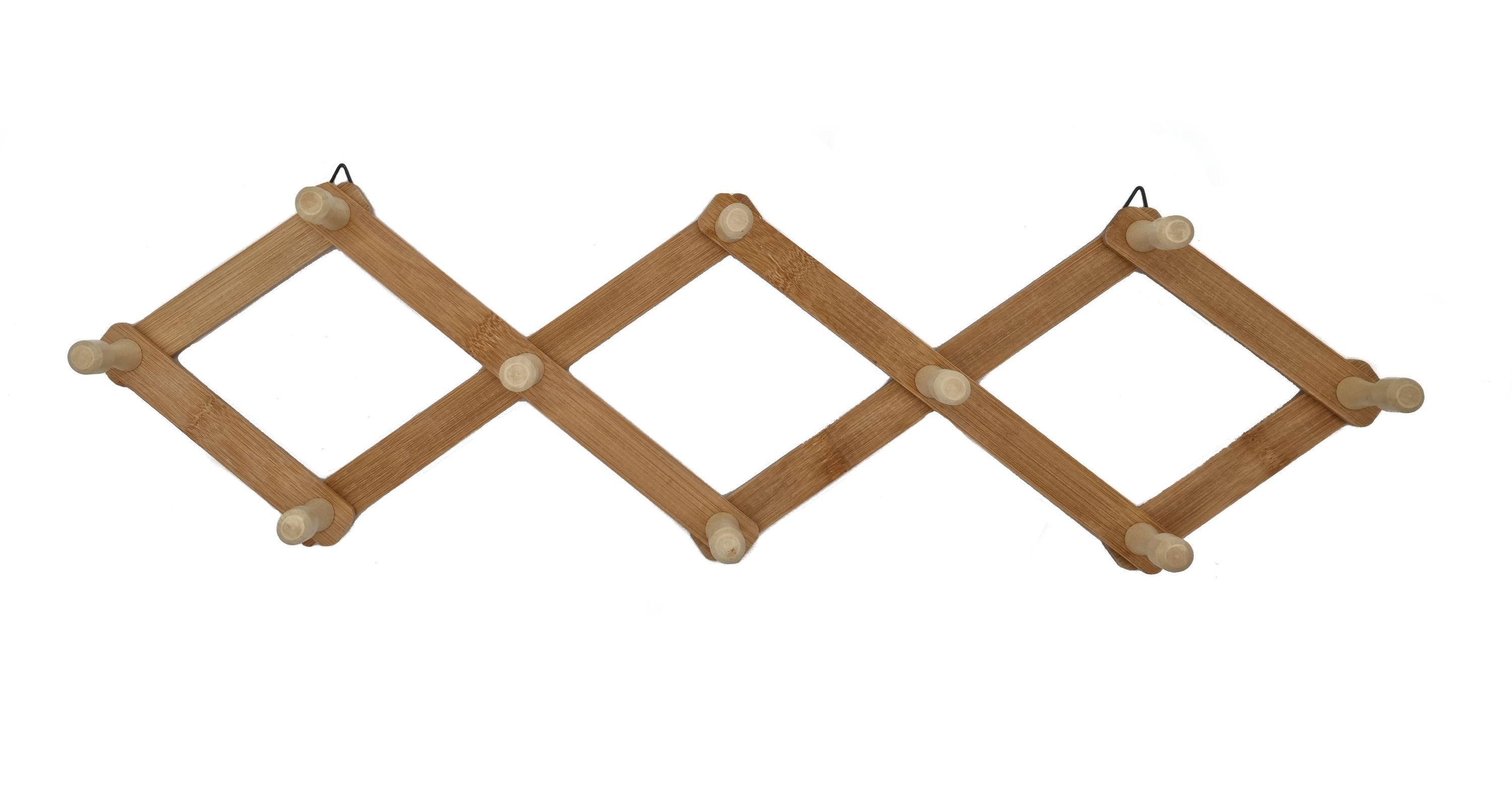 Bambus Wand Garderobe ausziehbar - 70 cm / 10 Haken - Holz Scheren Garderobenleiste