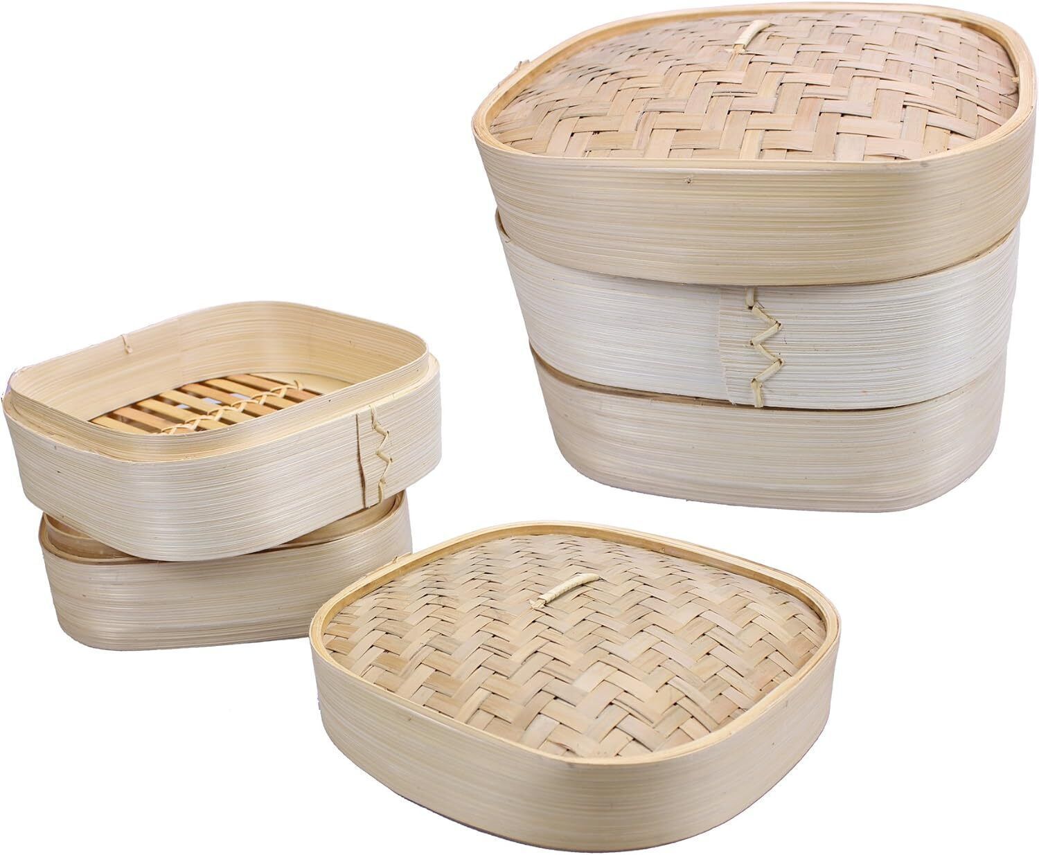 Bambusdämpfer Dampfgarer Set Dünsteinsatz Bambus Holz Asiatisch Dämpfen mit Bamb