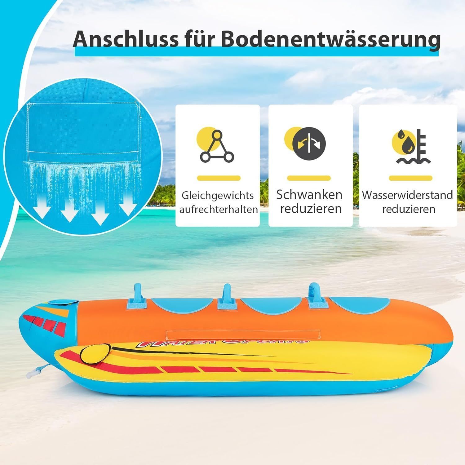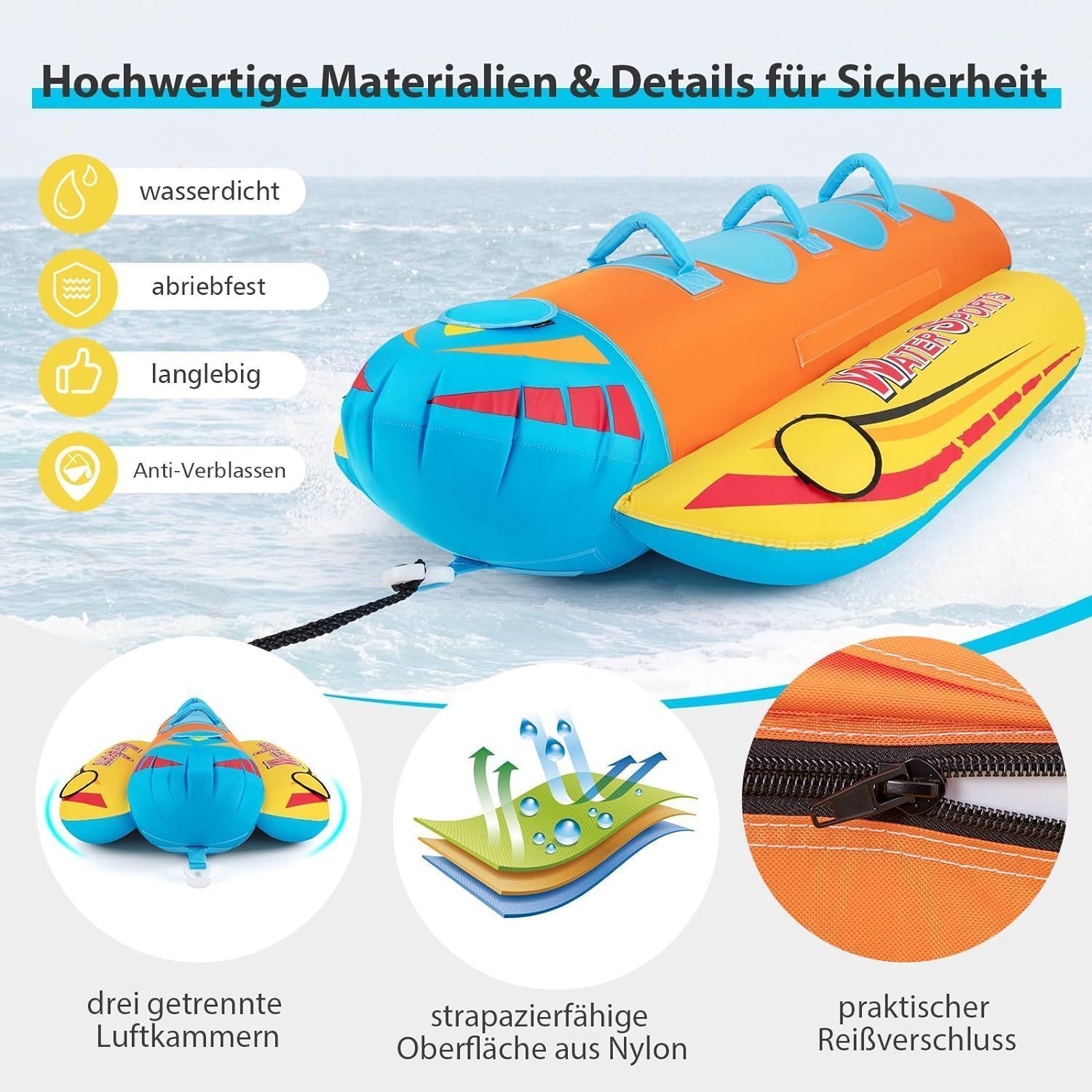 Bananenboot f¨¹r 3 Personen, Towable Tube mit 3 Eva-gepolsterten Sitzen und Griffen