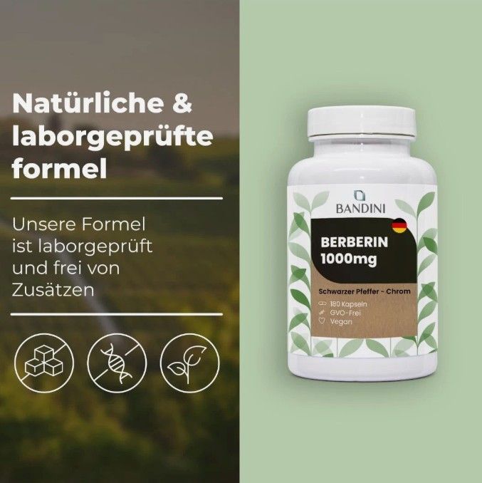 Bandini® Berberin 1000mg | 180 vegane Kapseln | Hochdosiert | Mit Chrom & Pfeffe